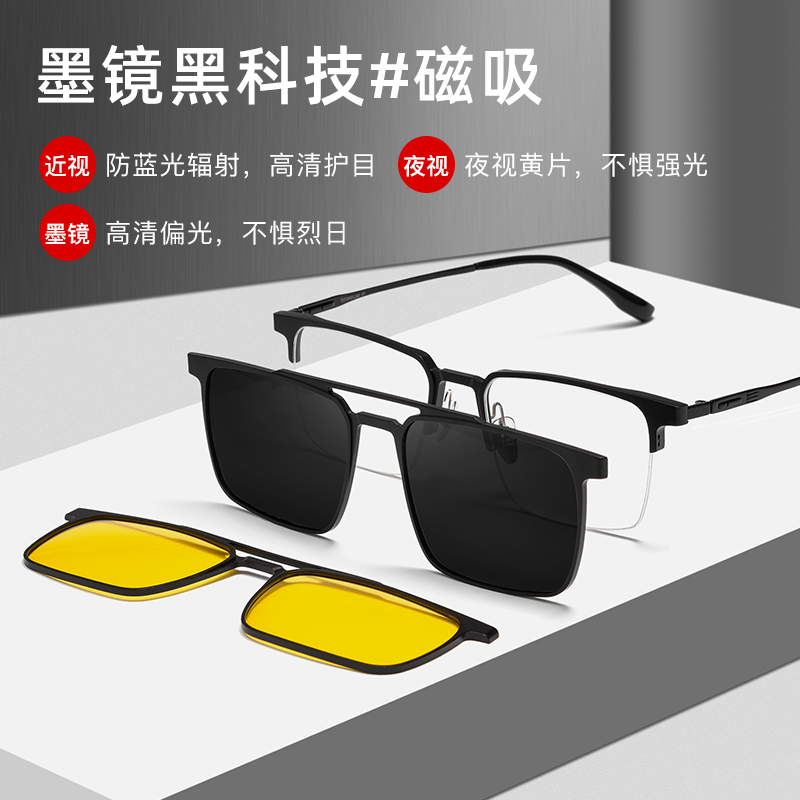 纯钛磁吸眼镜近视男款三合一偏光套镜配度数墨镜开车专用钓鱼眼镜