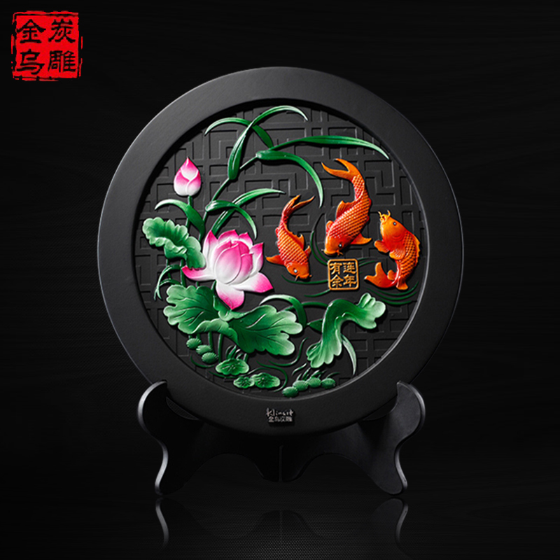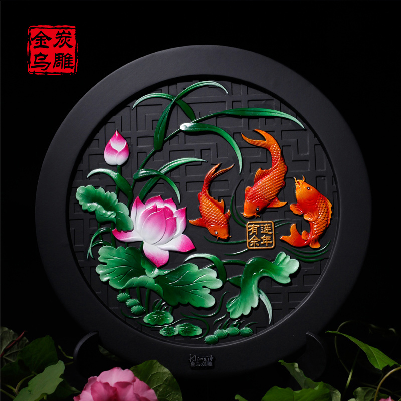 金乌炭雕连年有余活性炭雕家里装饰品客厅摆件酒柜装饰工艺品摆设