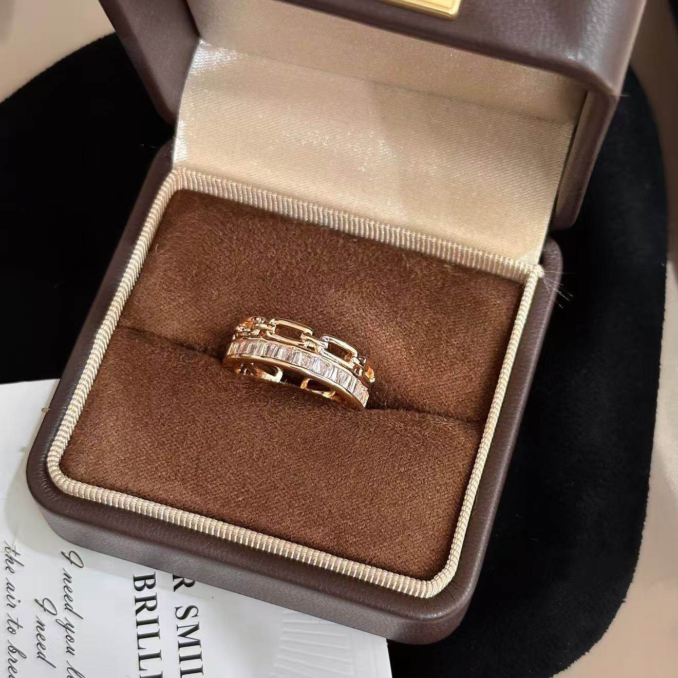 法式复古轻奢镂空双层排钻戒指女简约时尚百搭小众气质高级感指环