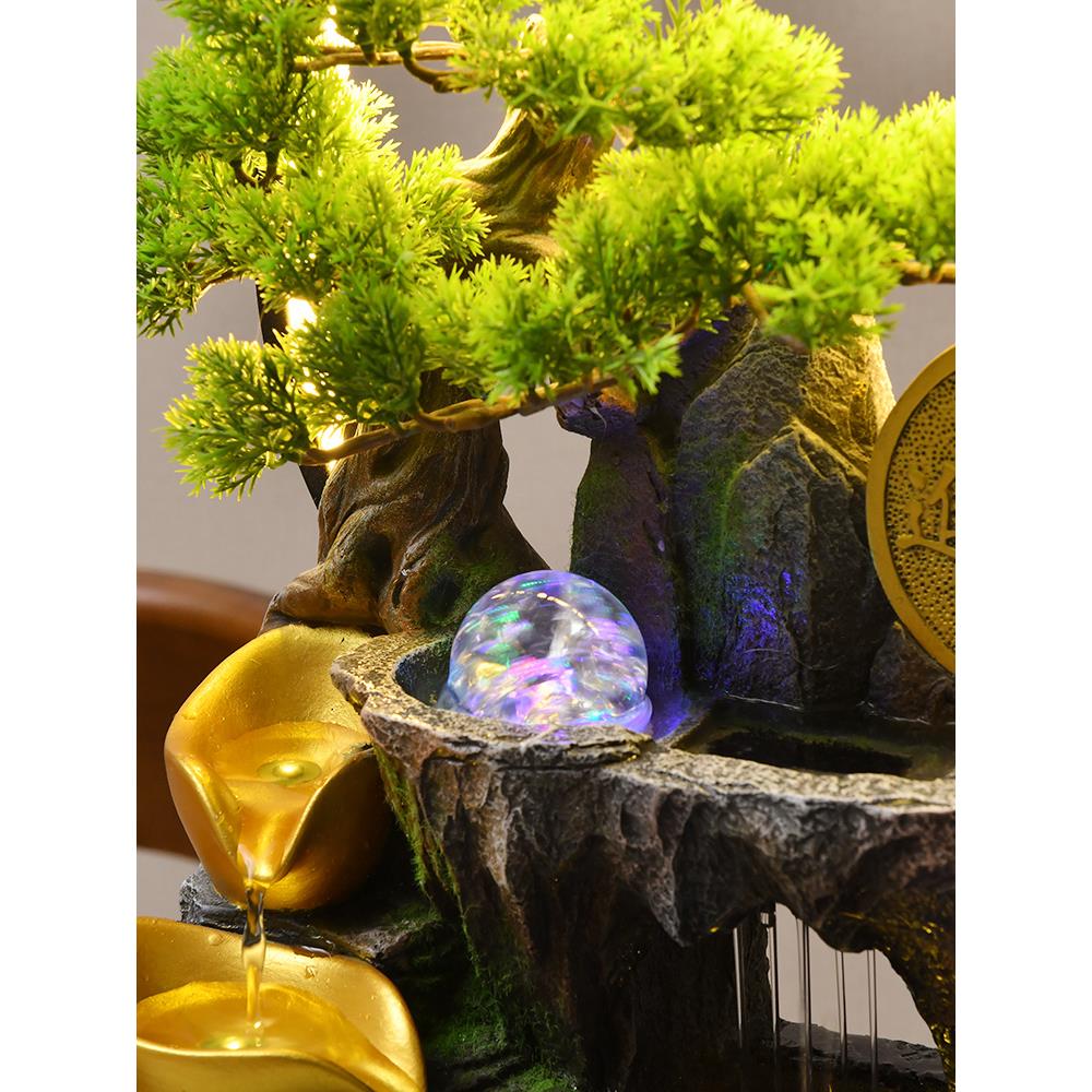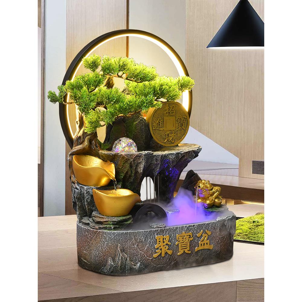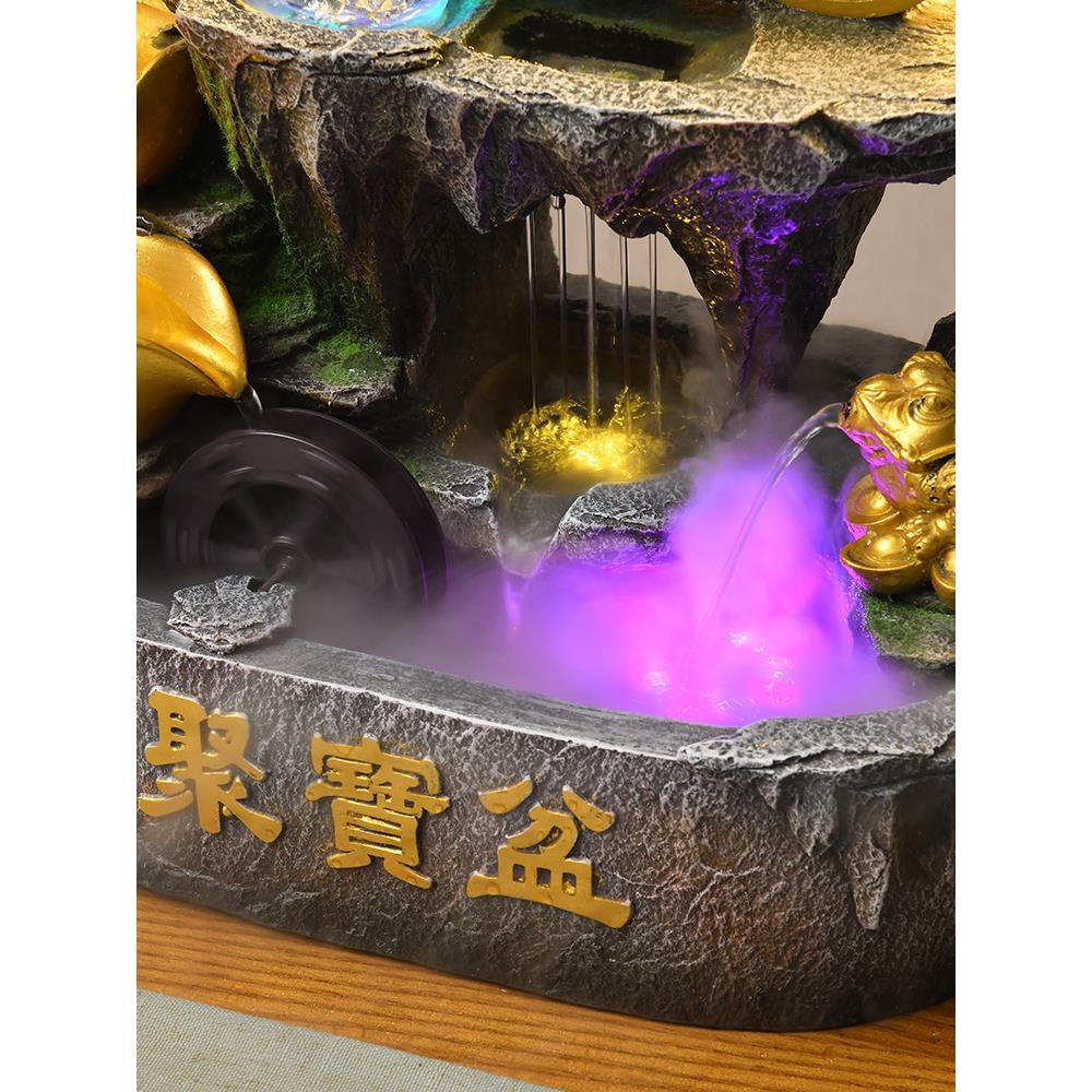 聚宝盆开业礼物店铺前台风水轮装饰办公室桌面招财流水摆件循环水