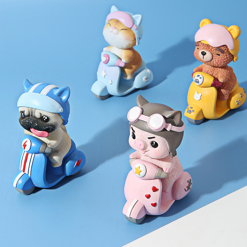 小动物开摩托车桌面公仔摆件蛋糕装饰品可爱摇头汽车载内装饰礼物
