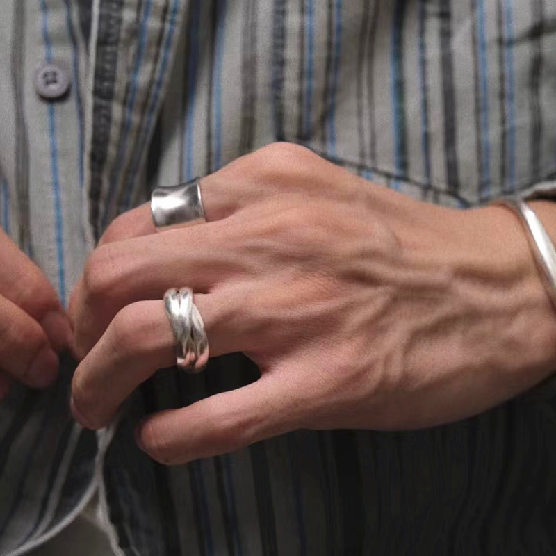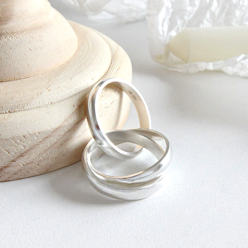 990足银素圈戒指男女简约气质三环圈指环食指戒纯银情侣对戒个性
