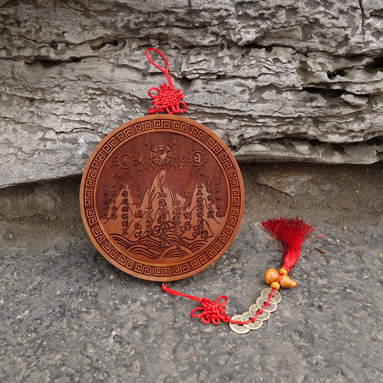 山海镇桃木摆件室外挂件室内八卦镜木雕家居客厅装饰房屋家用