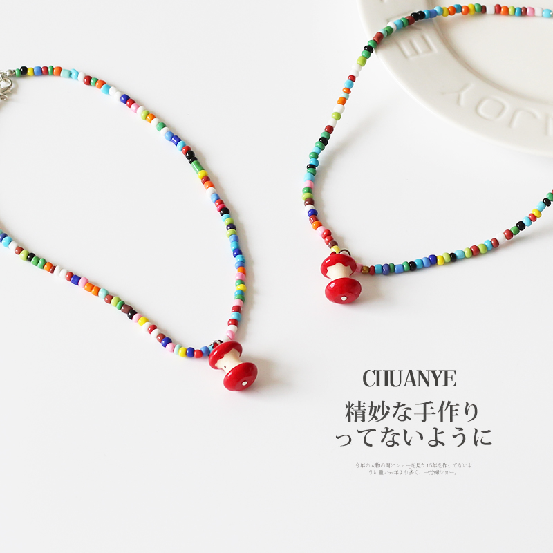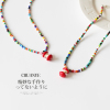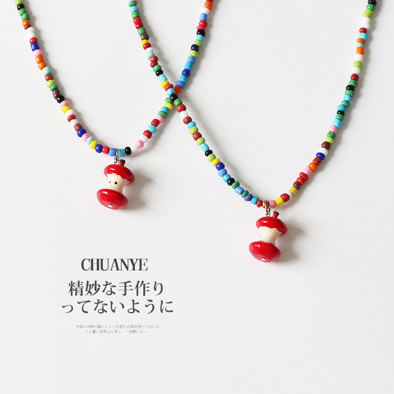 川野日韩彩色苹果锁骨链女生新款甜美小清新吊坠串珠项链头饰发饰