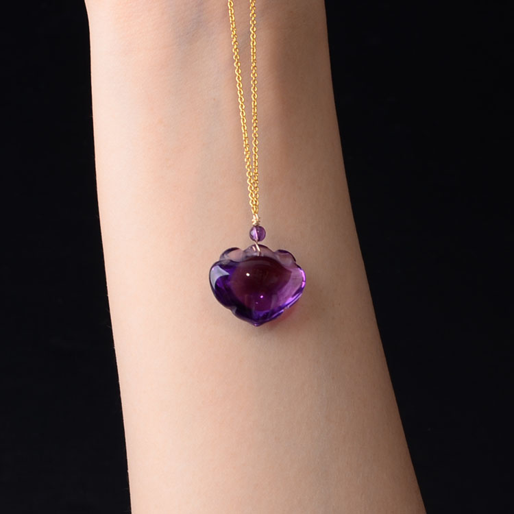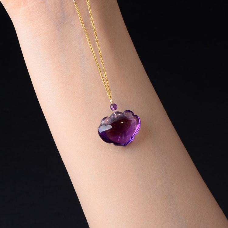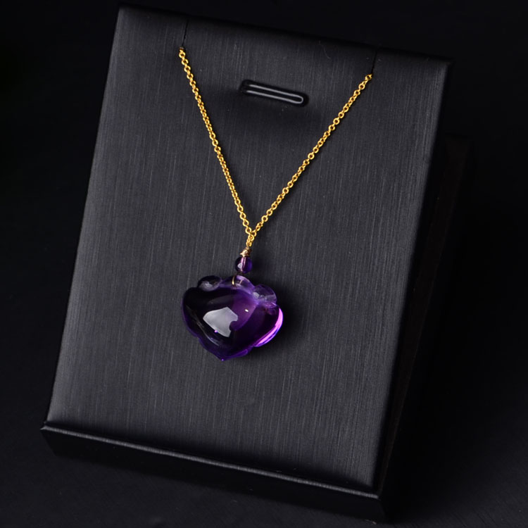 天然紫水晶如意锁吊坠女款招财转运平安如意锁挂坠锁骨链生日礼物