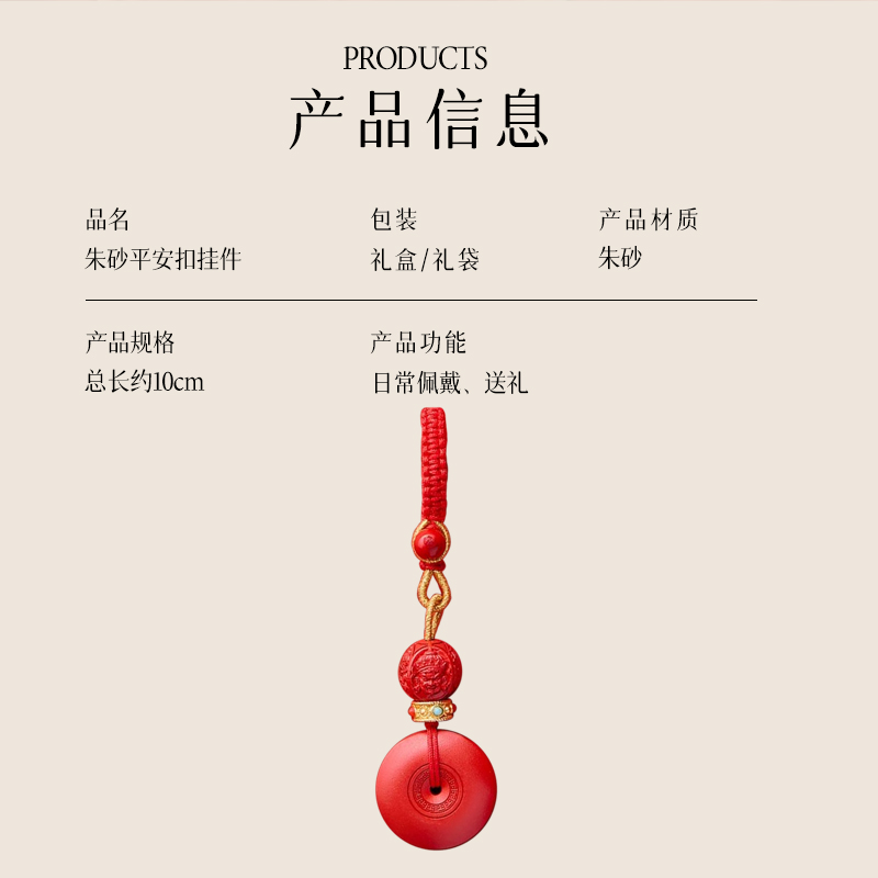 遇见普陀山朱砂平安扣钥匙扣汽车挂件2026新款男女款本命年护身符