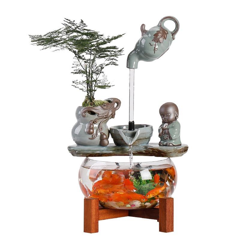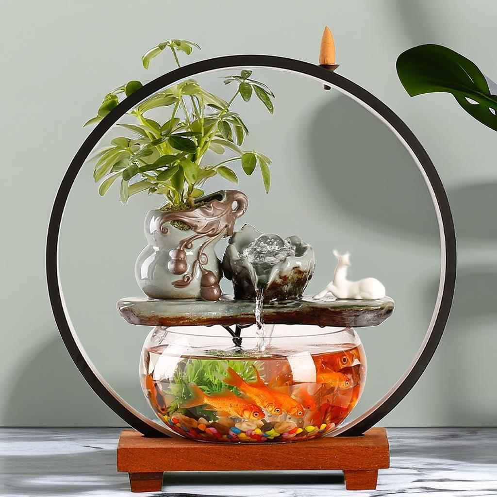 创意金鱼缸客厅桌面循环流水摆件小型家用迷你悬壶招财玻璃鱼缸