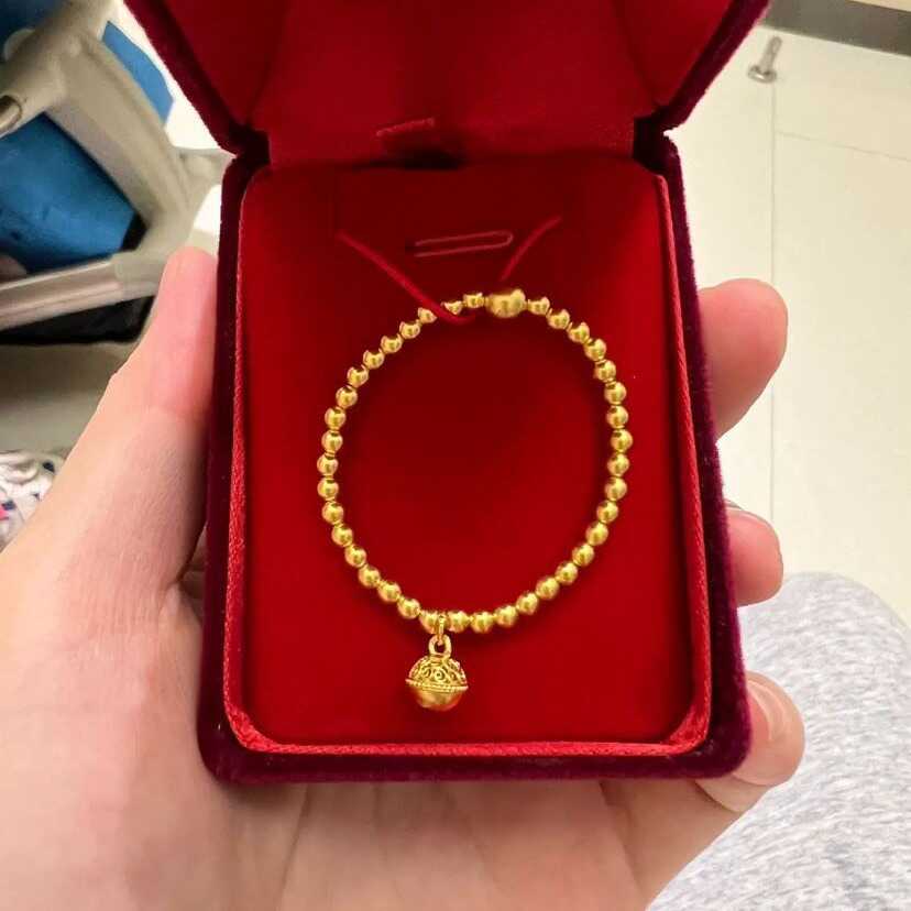 婴儿手链宝宝周岁礼物满月百天新生儿镀黄金色小金珠男女儿童脚链