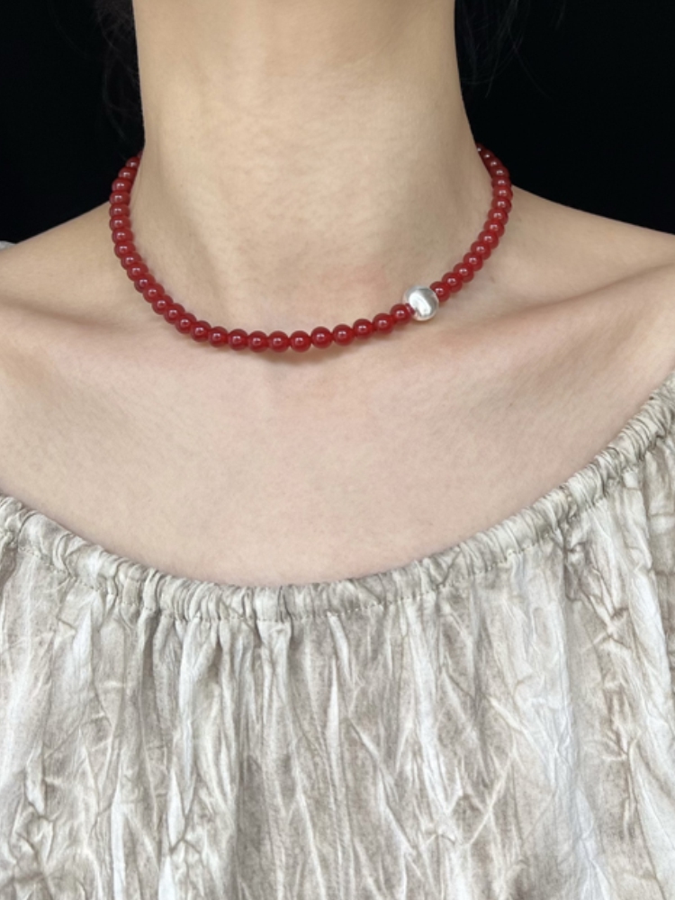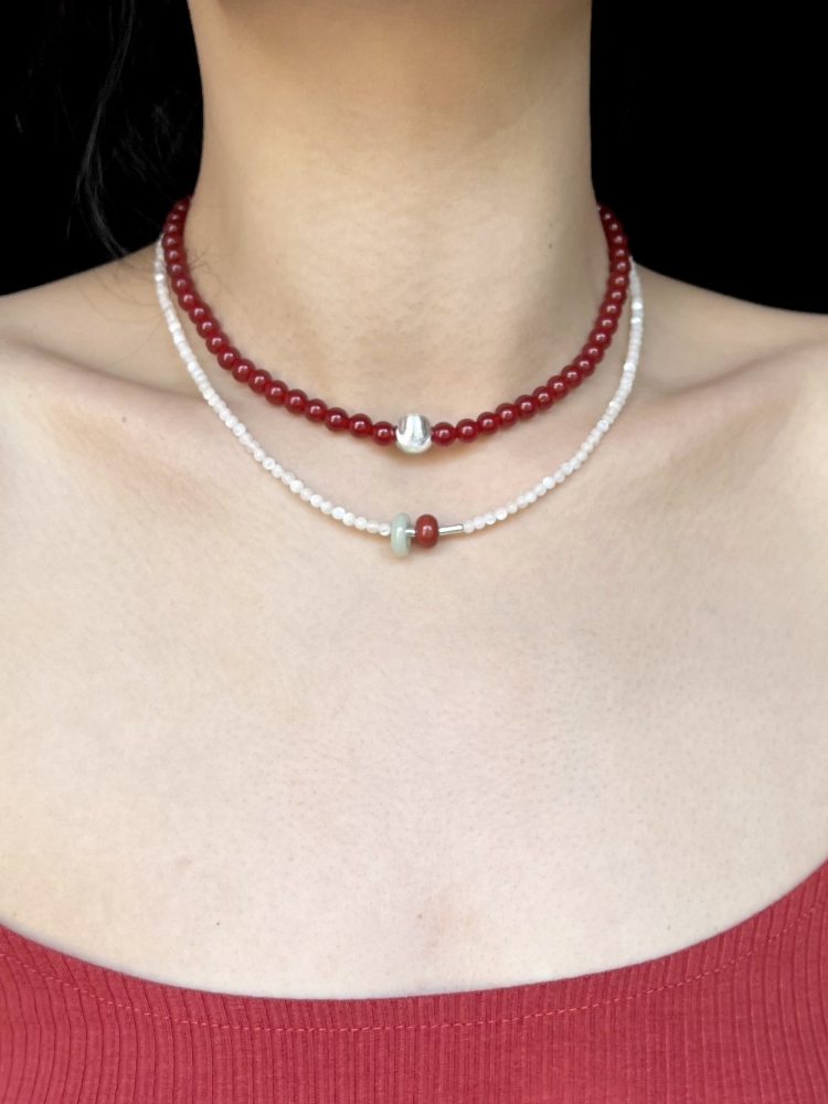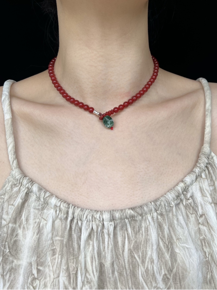LYUMIN原创新中式红玛瑙拼接绿色石极简古典风925银串珠手链项链