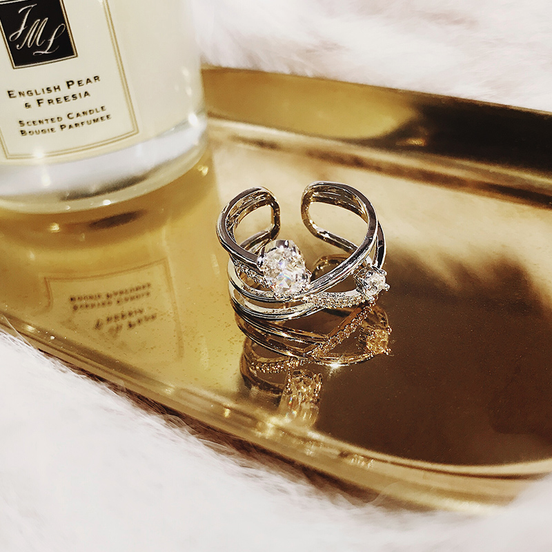 潮人个性多层开口水钻戒指女气质关节指环食指戒学生网红尾戒日韩