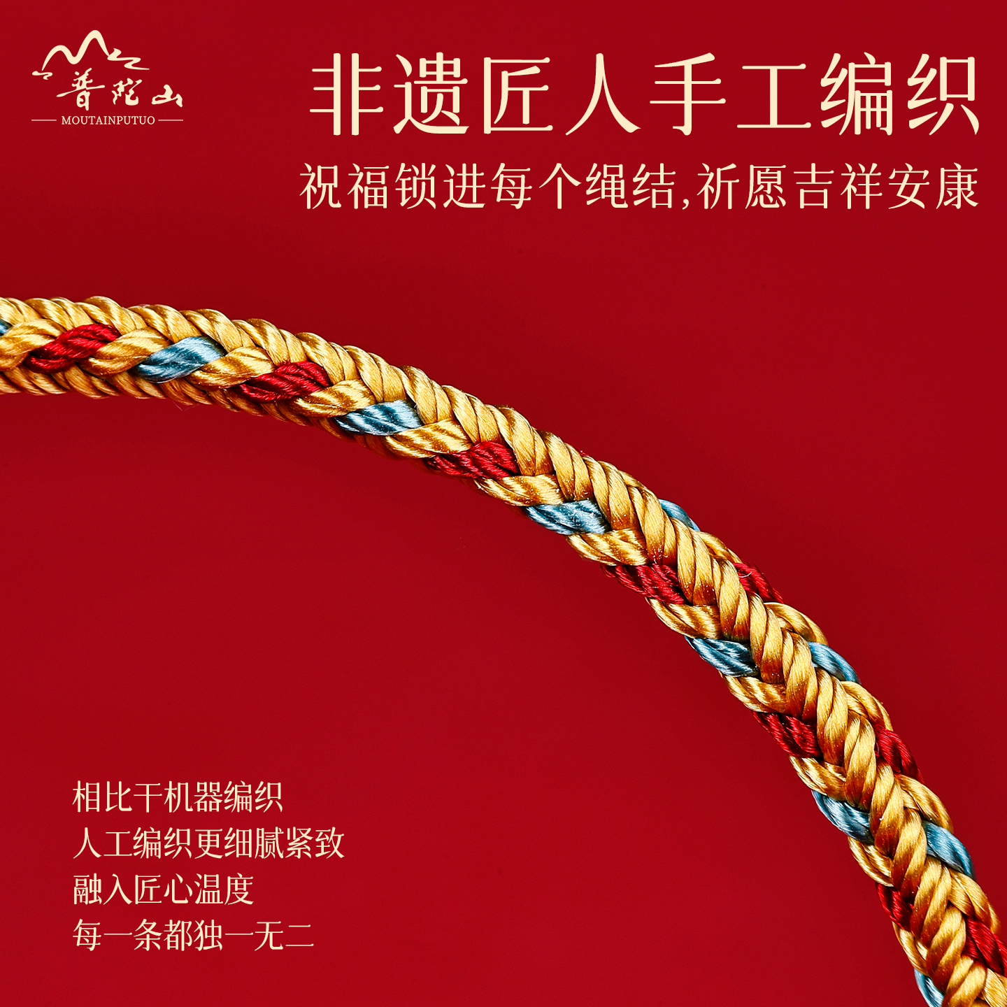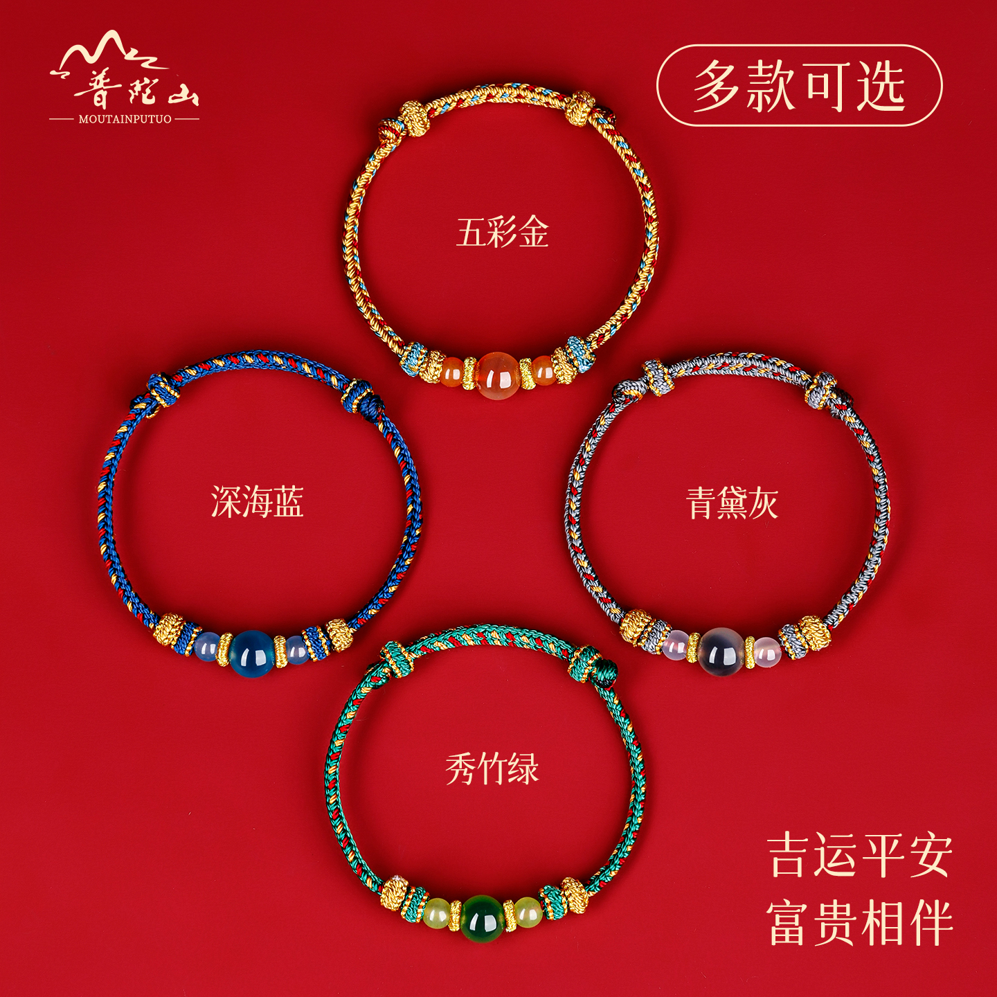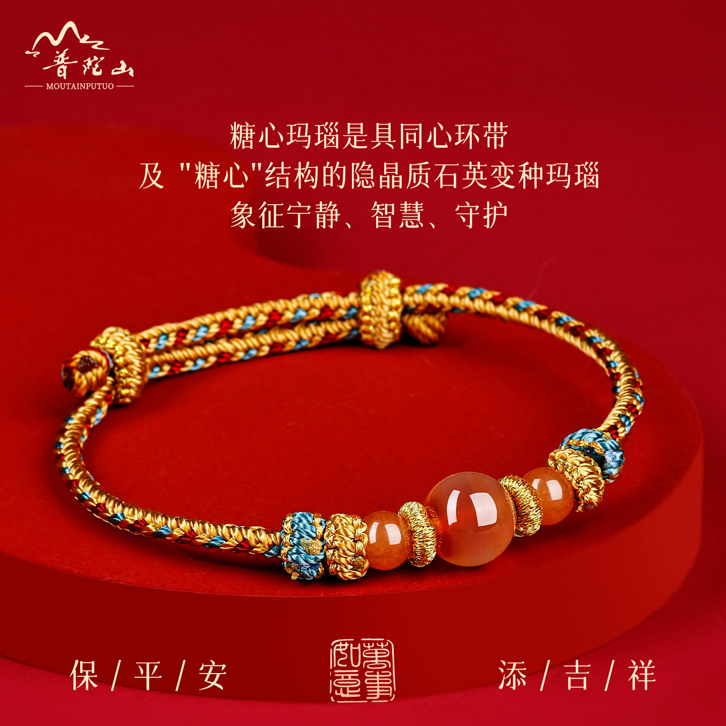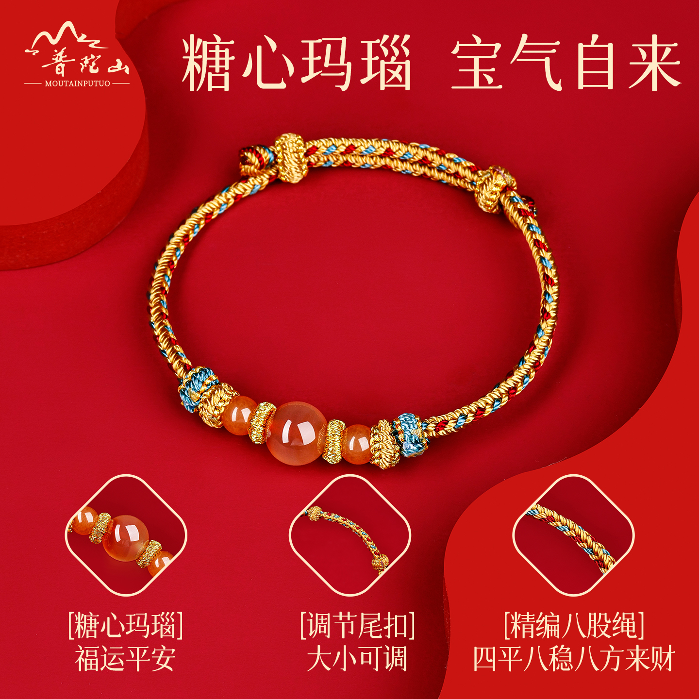 普陀山天然糖心玛瑙手绳男女款本命年护身符转运手链手工编织礼物