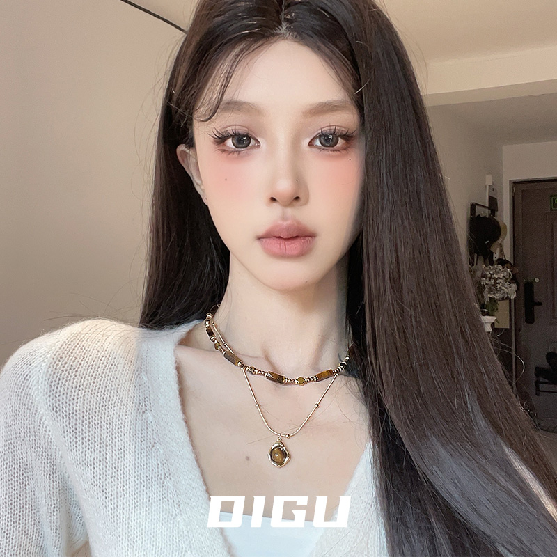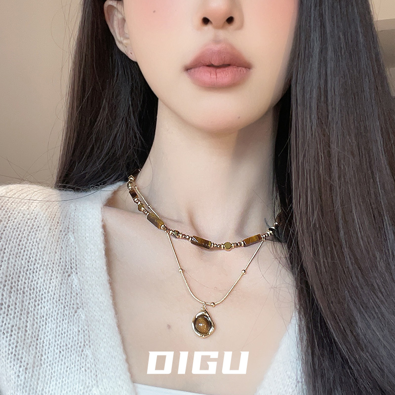 当前位置:首页>商品详情>DIGU气质美拉德风天然石串珠项链秋冬双层叠戴毛衣链虎眼石锁骨链