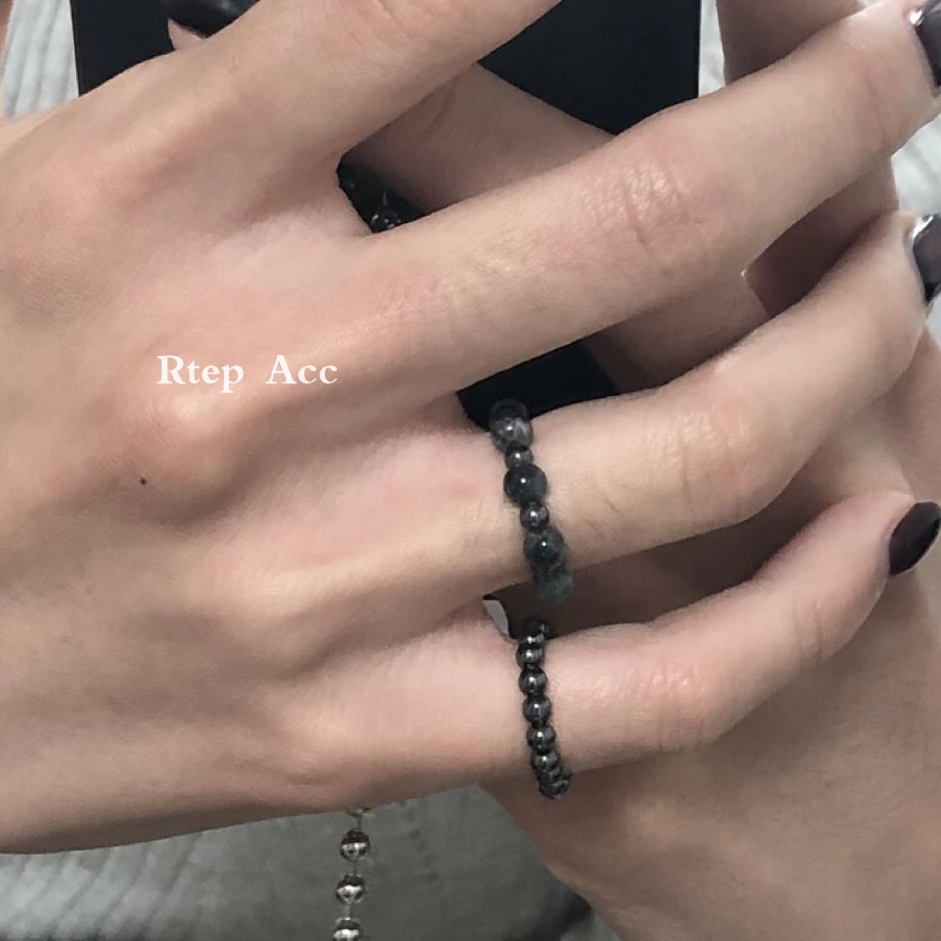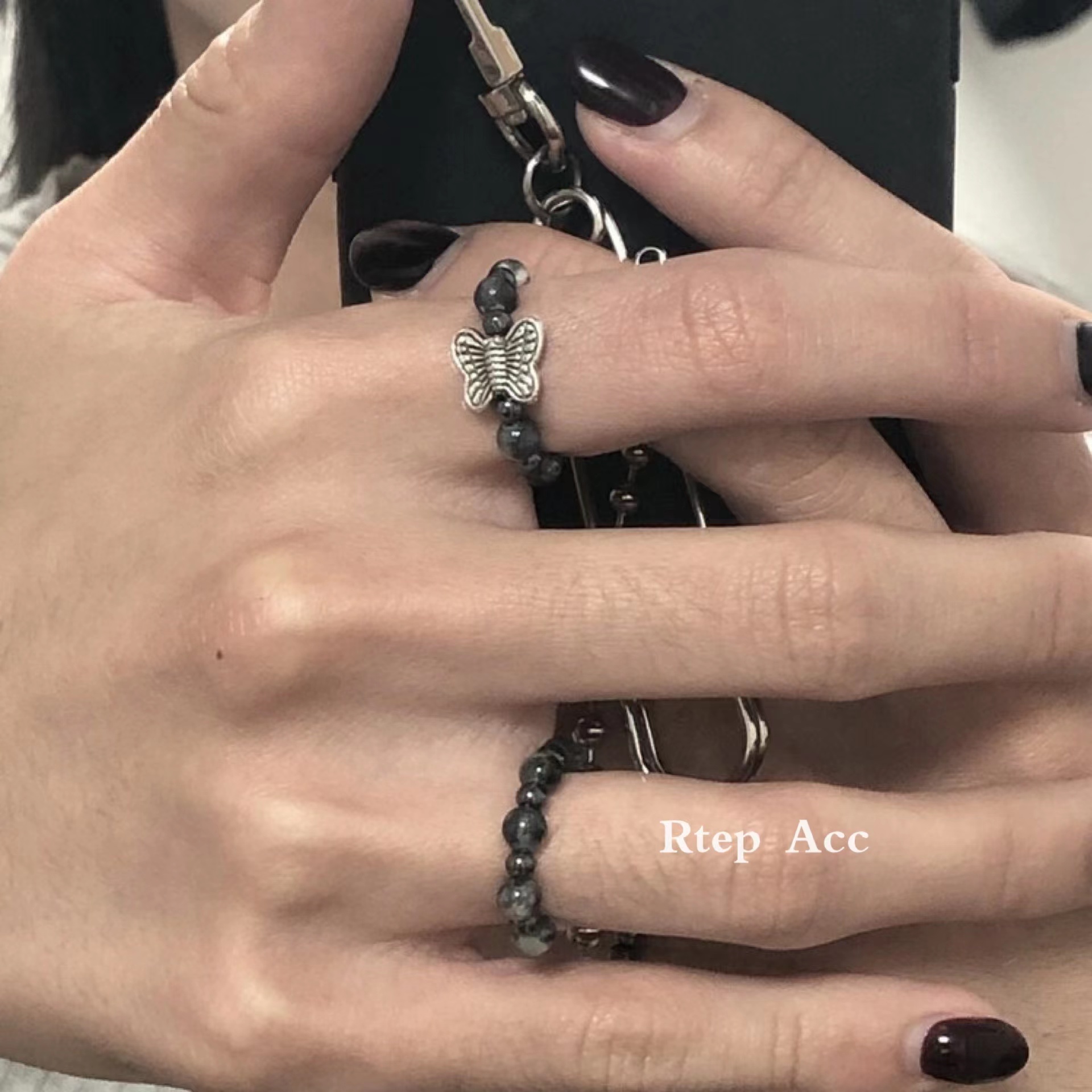 RTEP 手作自制天然原石灰色蝴蝶戒指弹力暗黑黑胆石串珠叠搭指环