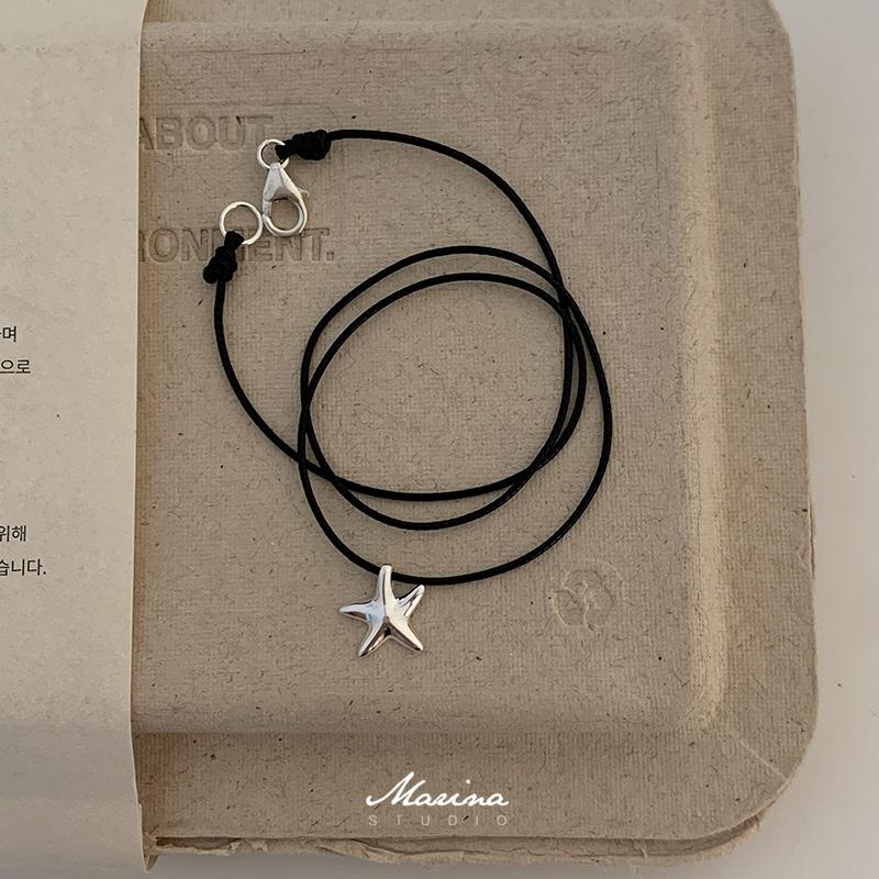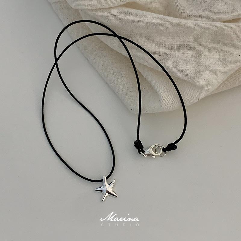 Marina|甜酷浪漫星星黑绳 s925纯银小众高级感女黑色项链五星