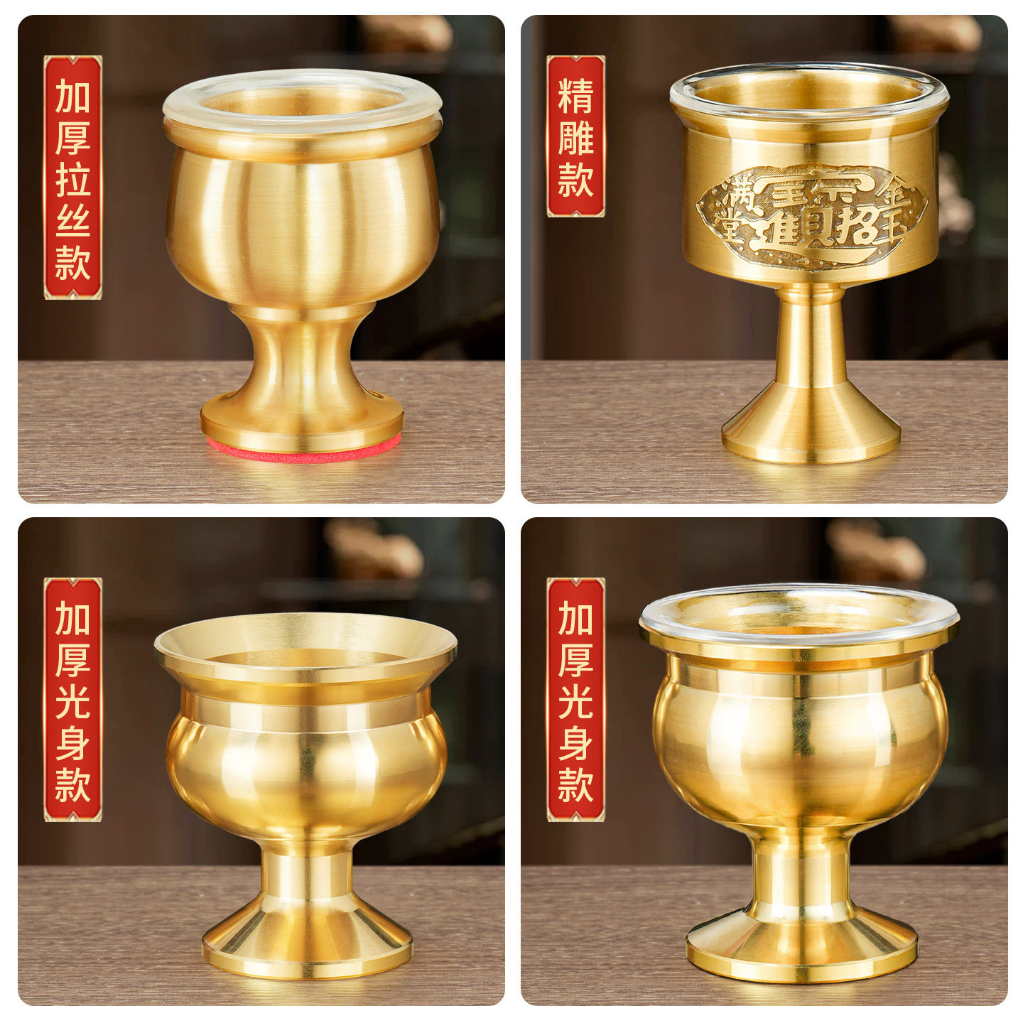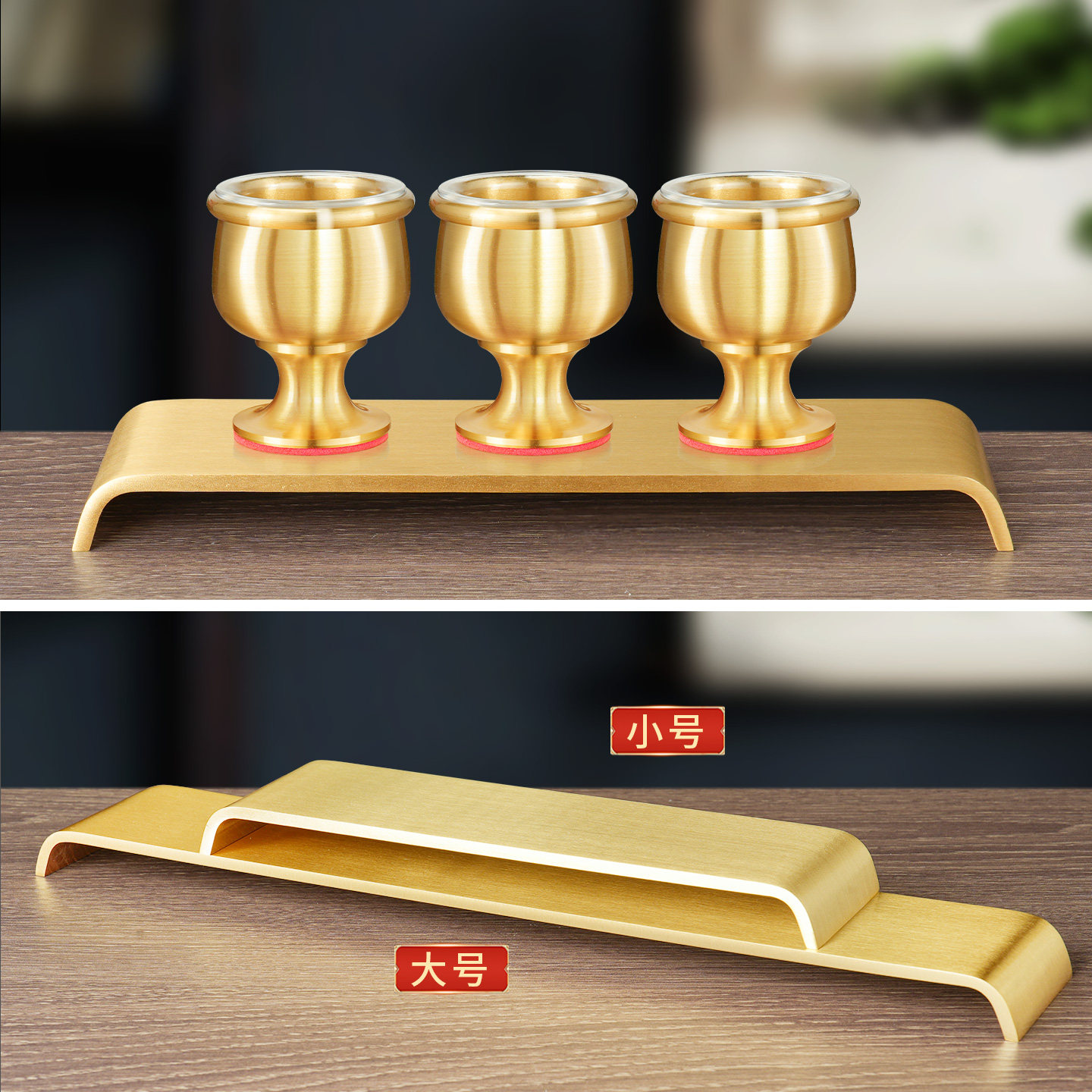 纯黄铜酒杯供台套装供佛神台财神爷祠堂寺庙家用杯托仙家供奉摆件