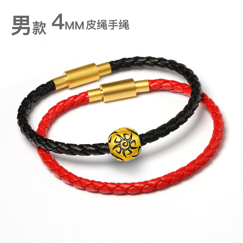 粗款4mm皮绳手链男可穿黄金转运珠编织手绳本命年红绳黑绳半成品