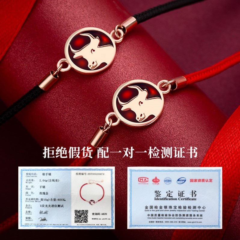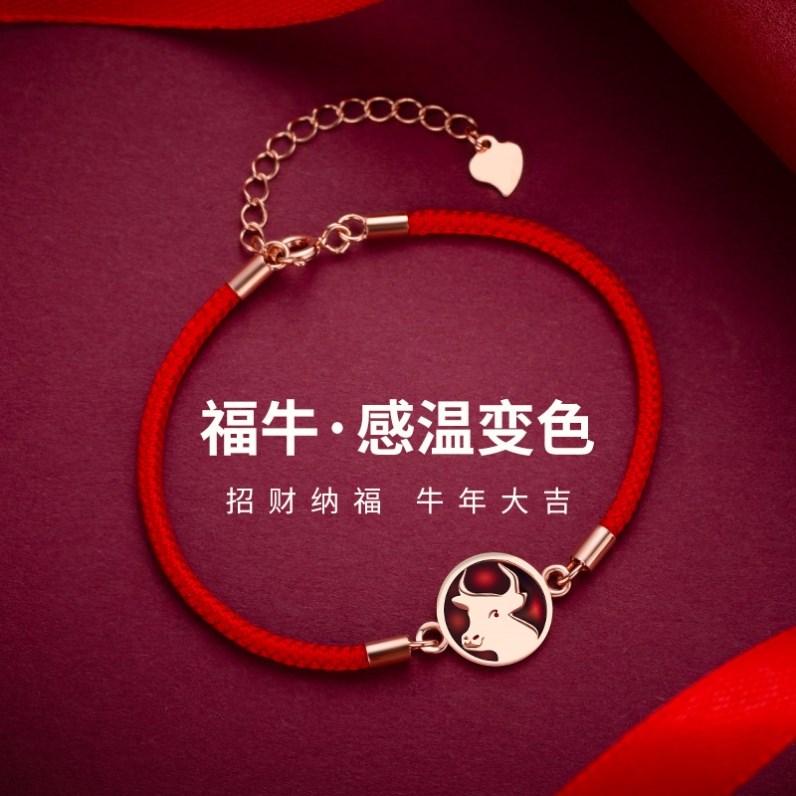 本命年新年红绳手链编织手绳女925纯银简约学生轻奢生肖小牛首饰