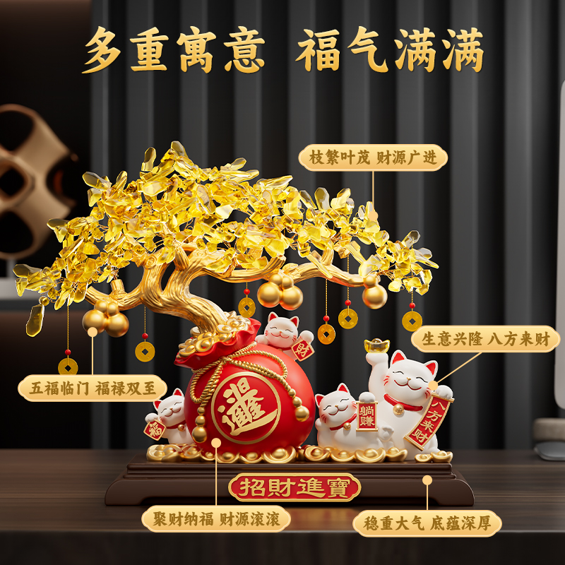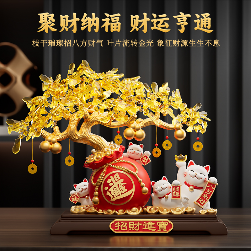 财源广进发财树招财猫摆件开业礼物前台高档装饰大吉乔迁新居礼品