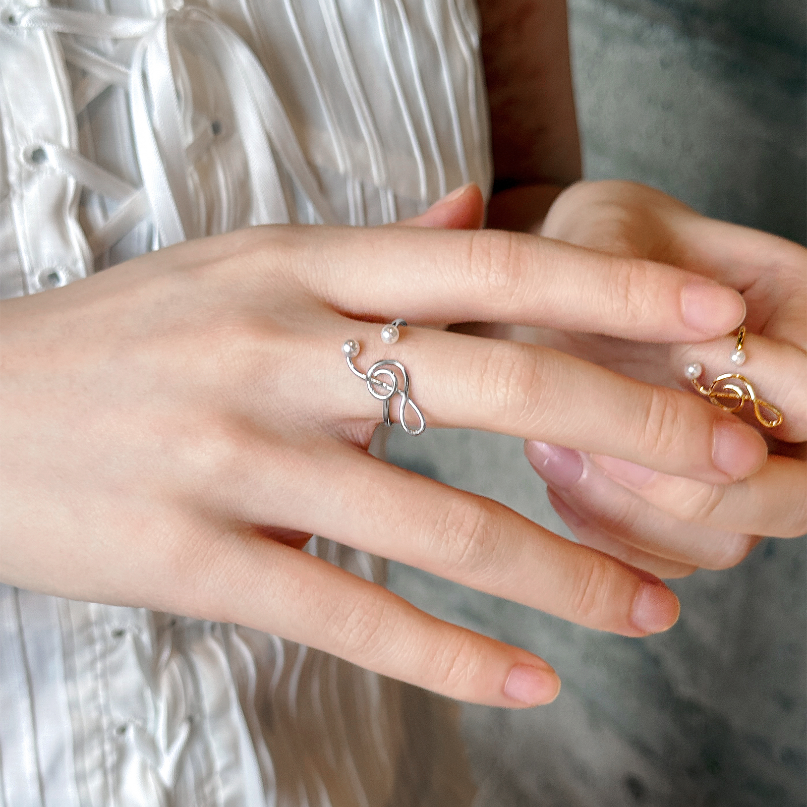 OSEWAYA戒指小众个性音符珍珠开口指环日系少女可调节手饰学生党