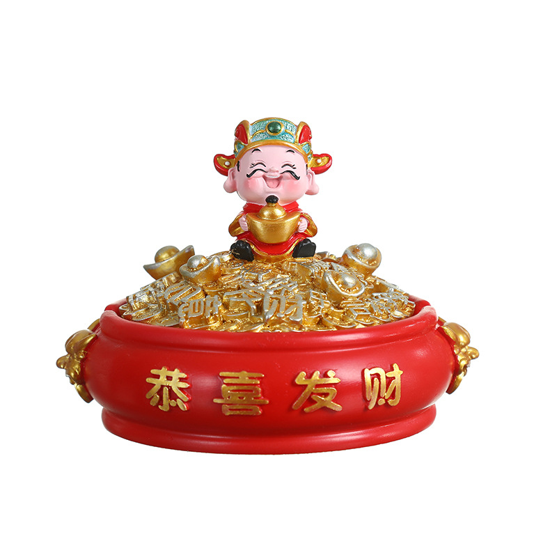 财神爷摆件摇头公仔烟灰缸手机支架新年礼物开业招财玄关托盘摆饰