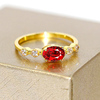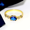 韩版气质鸽子蛋椭圆形蓝红宝石色水晶戒指祖母绿色锆石仿真钻戒