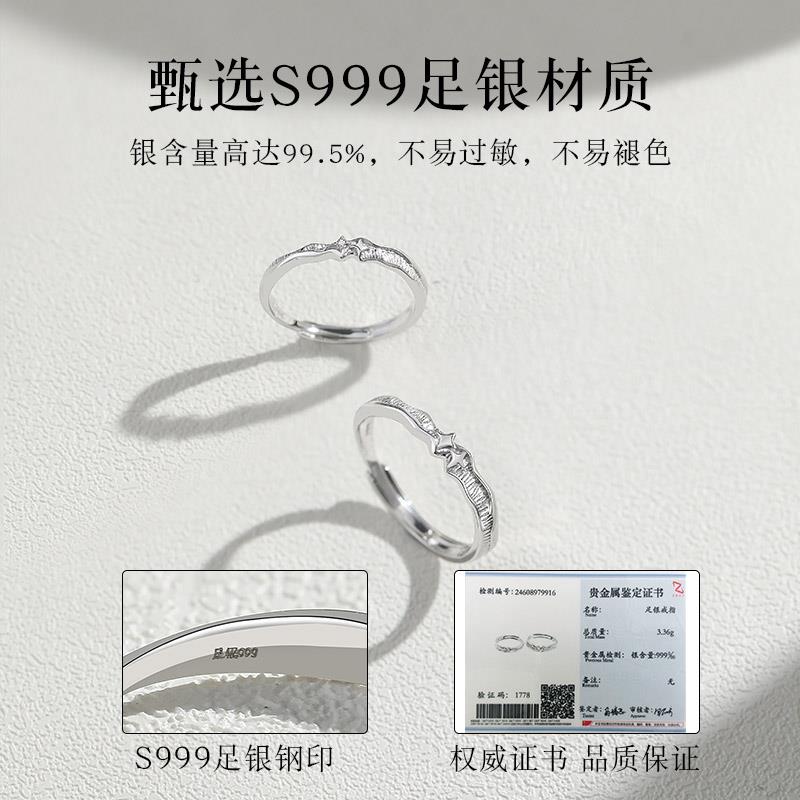 星光S999足银情侣戒指女男小众设计对戒生日七夕情人节礼物送女友