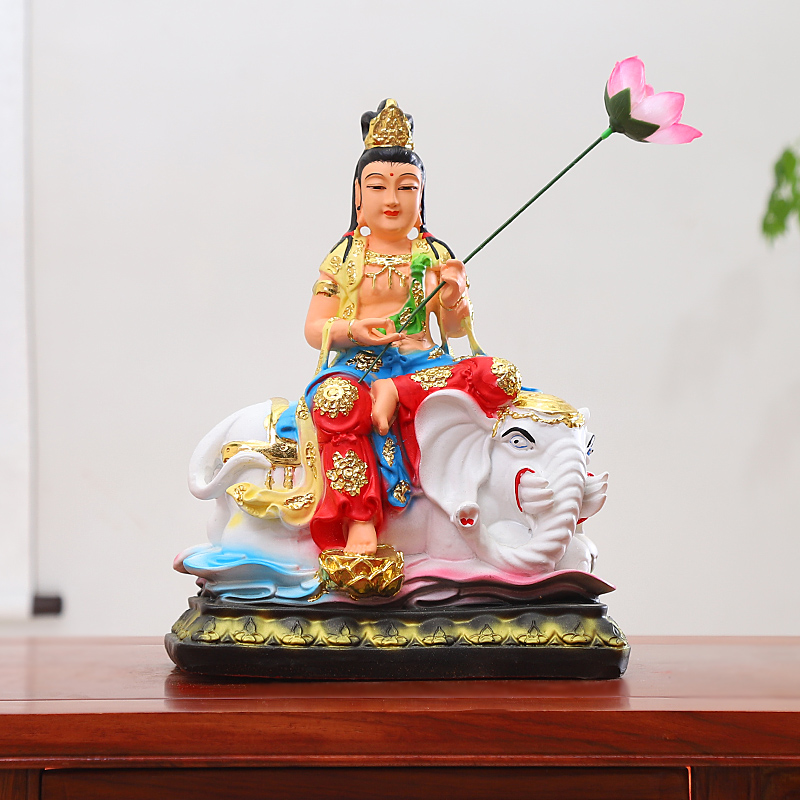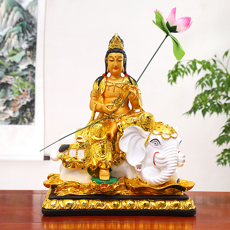 新款文殊普贤神像树脂工艺贴金彩绘家用佛堂桌面供奉佛像摆件19寸