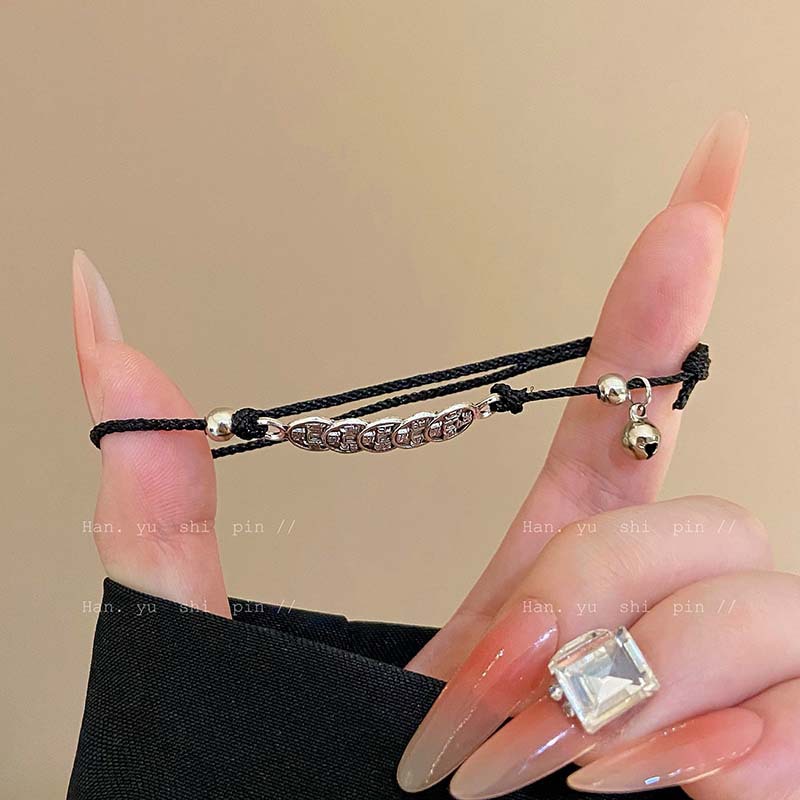 复古铜钱编织情侣手链时尚个性新中式可调节铃铛手绳小众古风手环