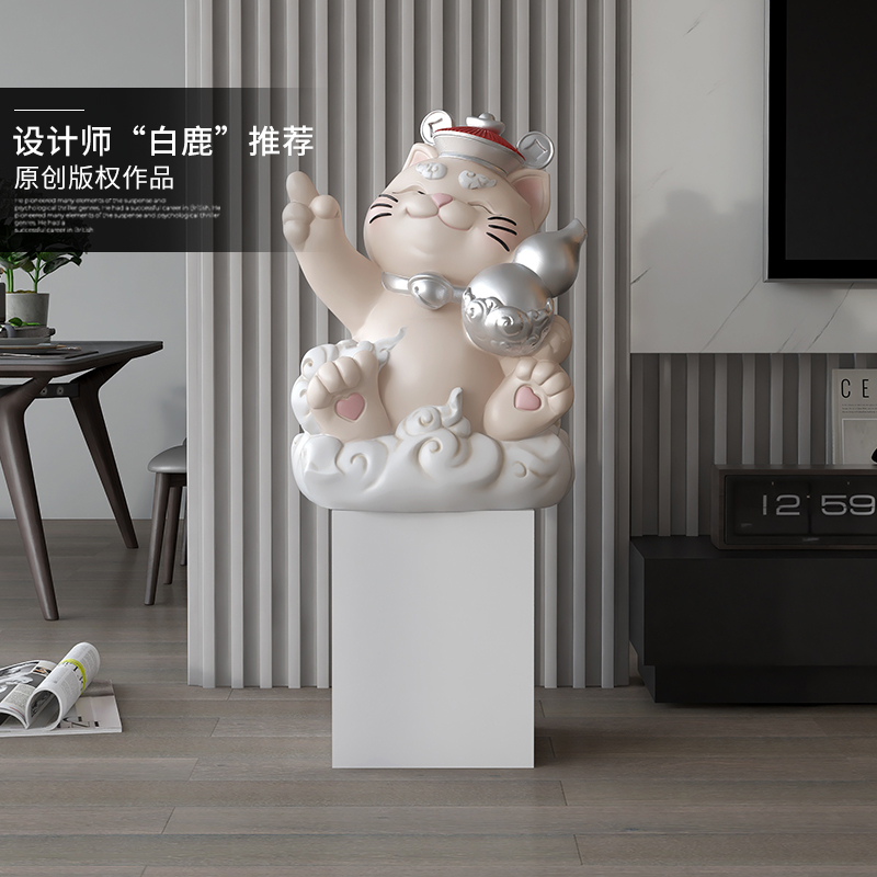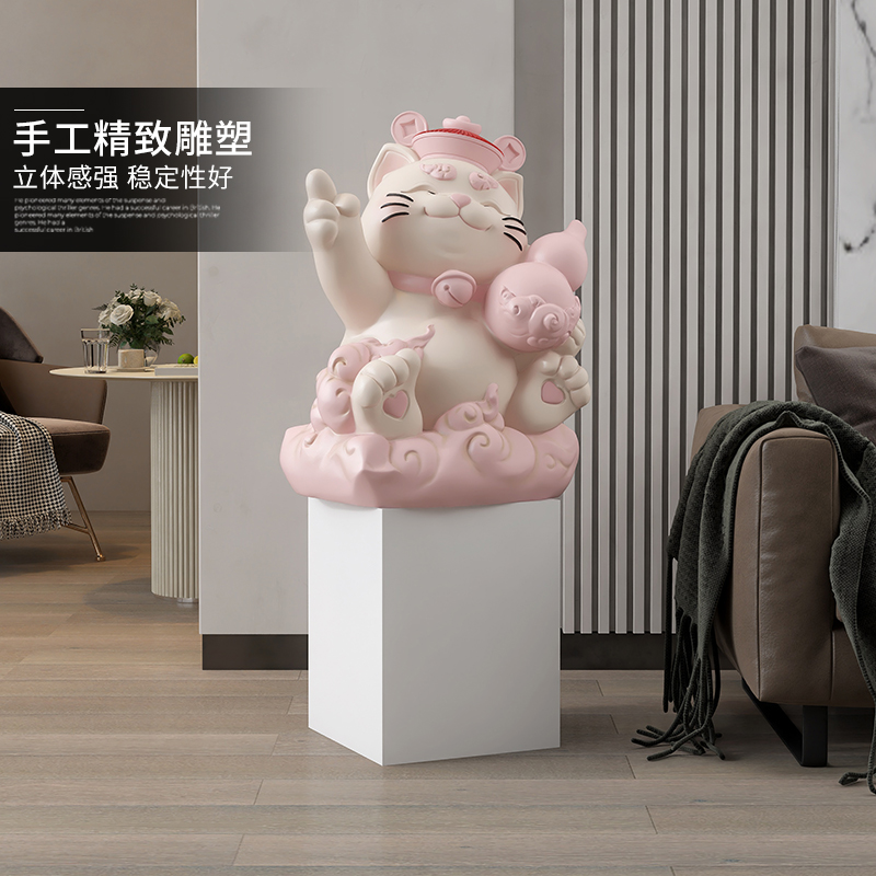 招财猫落地摆件家居饰品开业礼物客厅沙发旁托盘收纳乔迁新年礼品