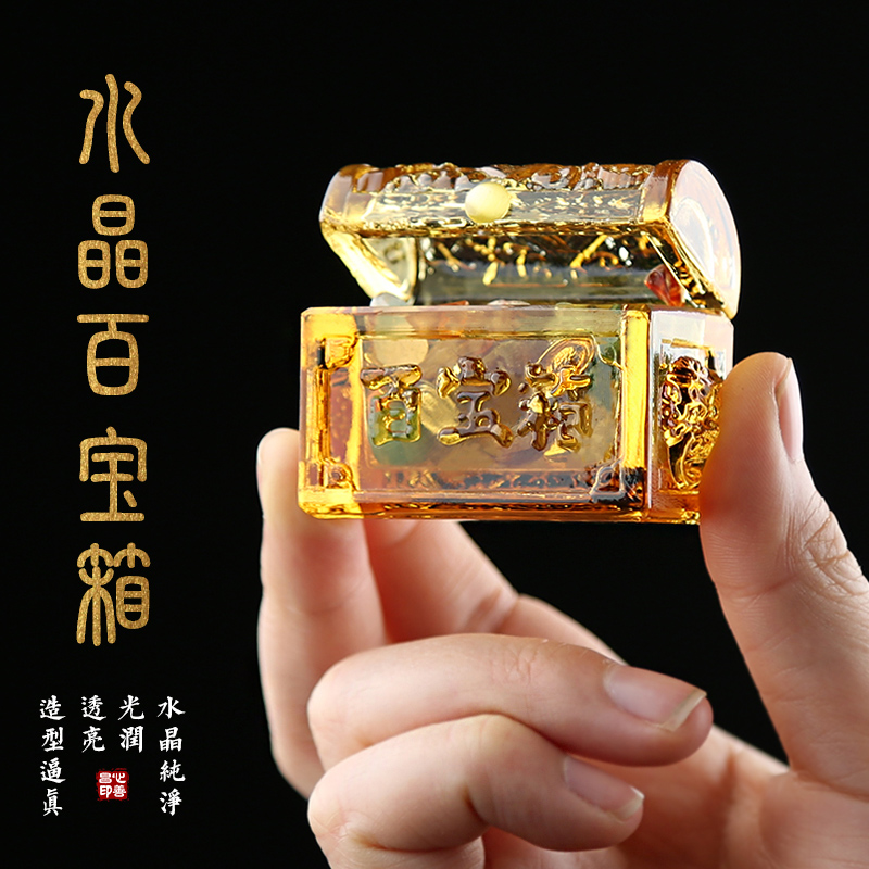 随葬品水晶百宝箱安葬用品殡葬祭祀陪葬金条如意黄色金色百宝箱