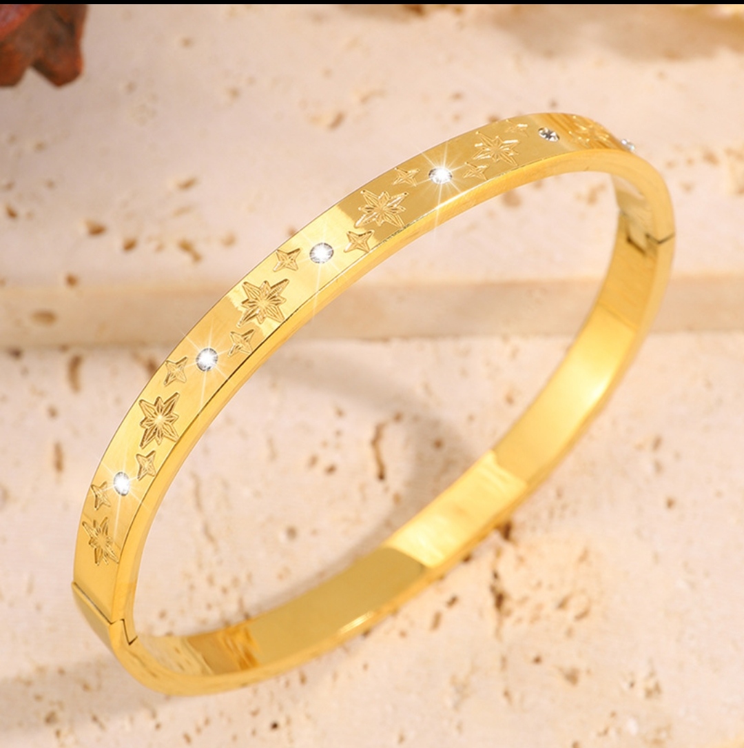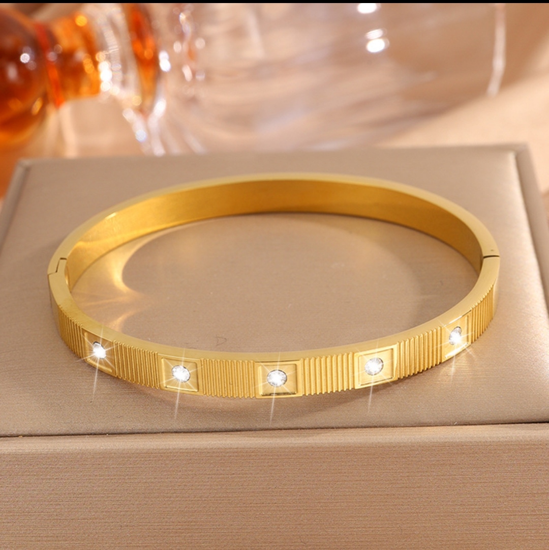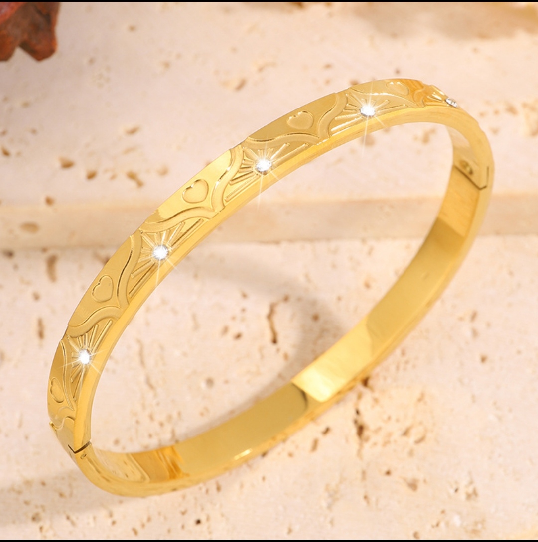 轻奢白搭不锈钢压印镀金手镯新颖多规格多款式