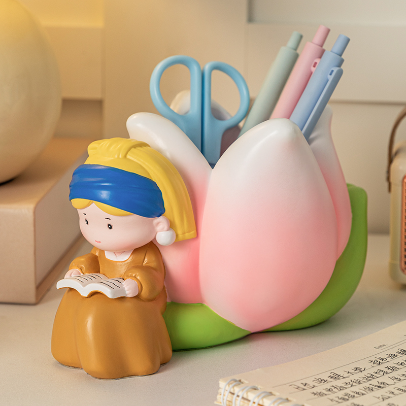 珍珠女孩创意笔筒办公室桌面装饰品摆件收纳盒桶生日礼物女生实用