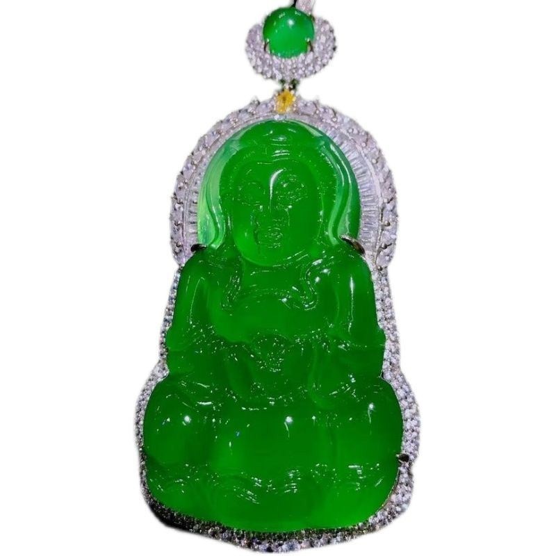 冰种阳绿观音吊坠项链翡翠色玉观音平安转运挂件男女款毛衣链