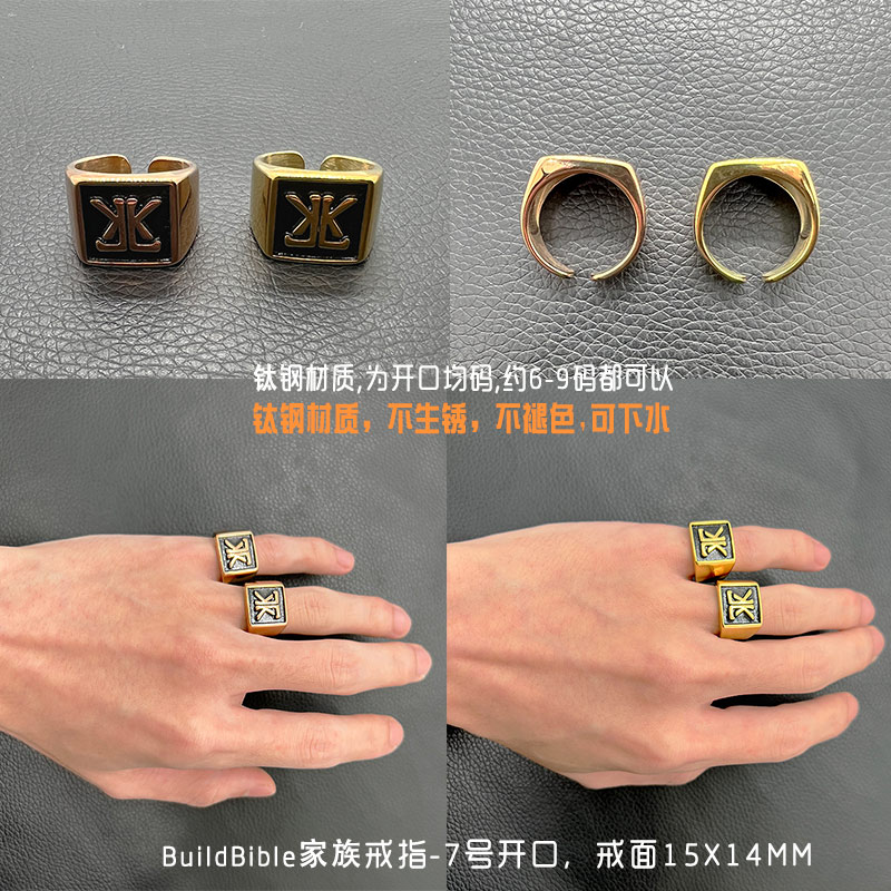 BuildBible同款家族玫瑰黄金戒指环开口圈周边黑帮金建成柏博饰品