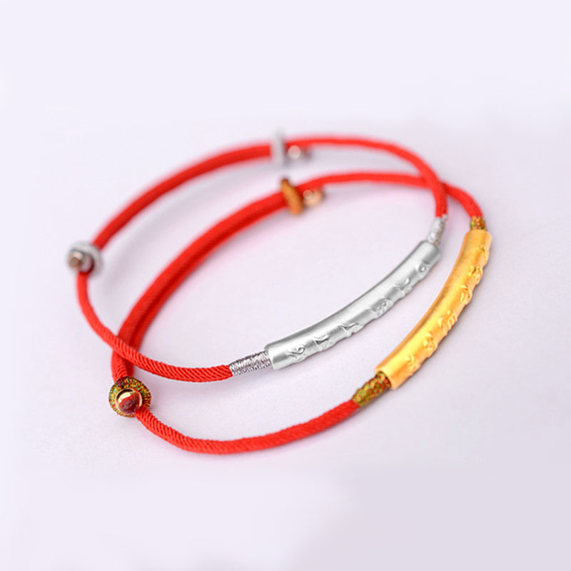 999纯银金六字真言兔年本命年红绳手链女男转运简约编织手绳化解