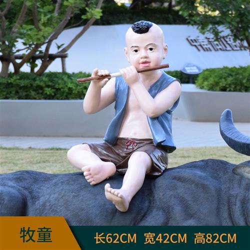 园林牧童骑仿真水牛雕塑农耕模型摆件大型动物玻璃钢户外景观装饰