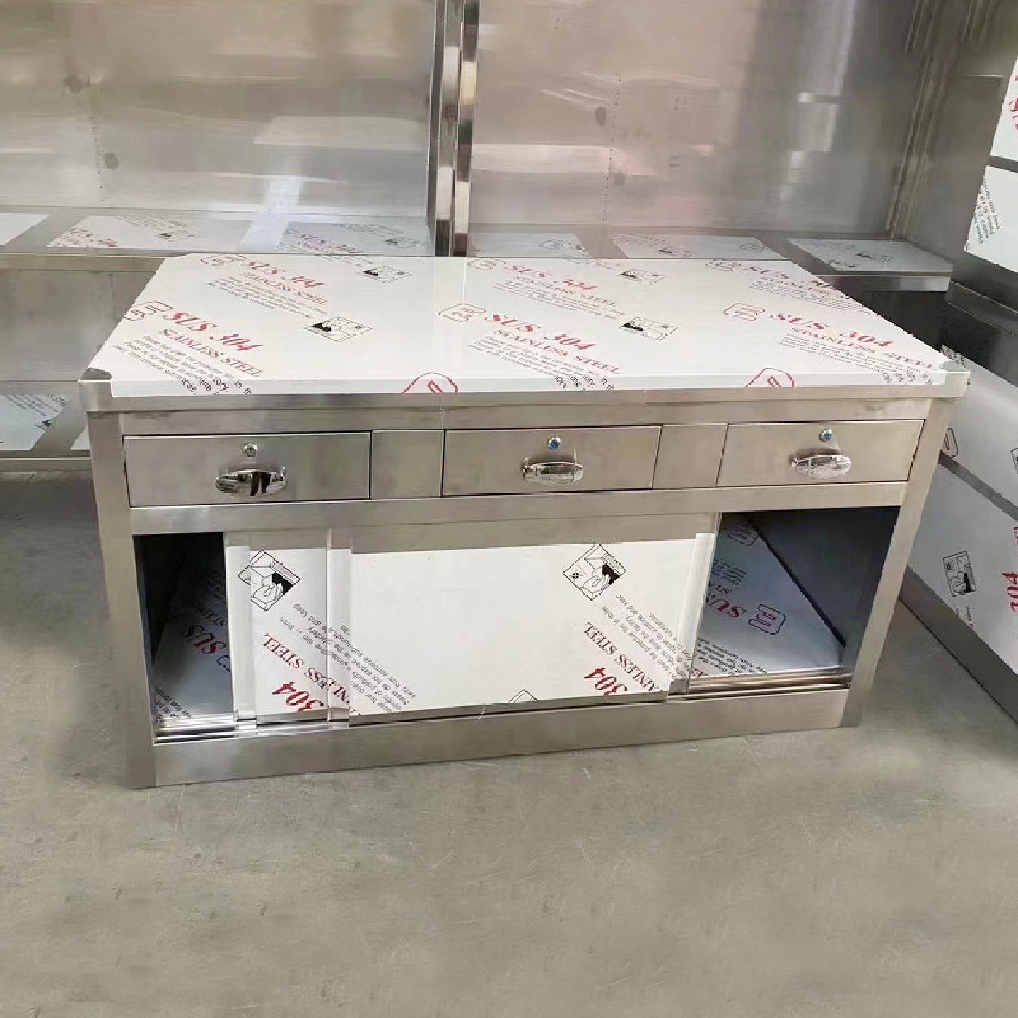 三门抽屉桌不锈钢操作台加厚工作台厨房收纳柜工厂商用家用一体柜