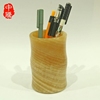 天然玉笔筒办公室黄玉简约摆件时尚家居学生用玉石桌面创意男礼品