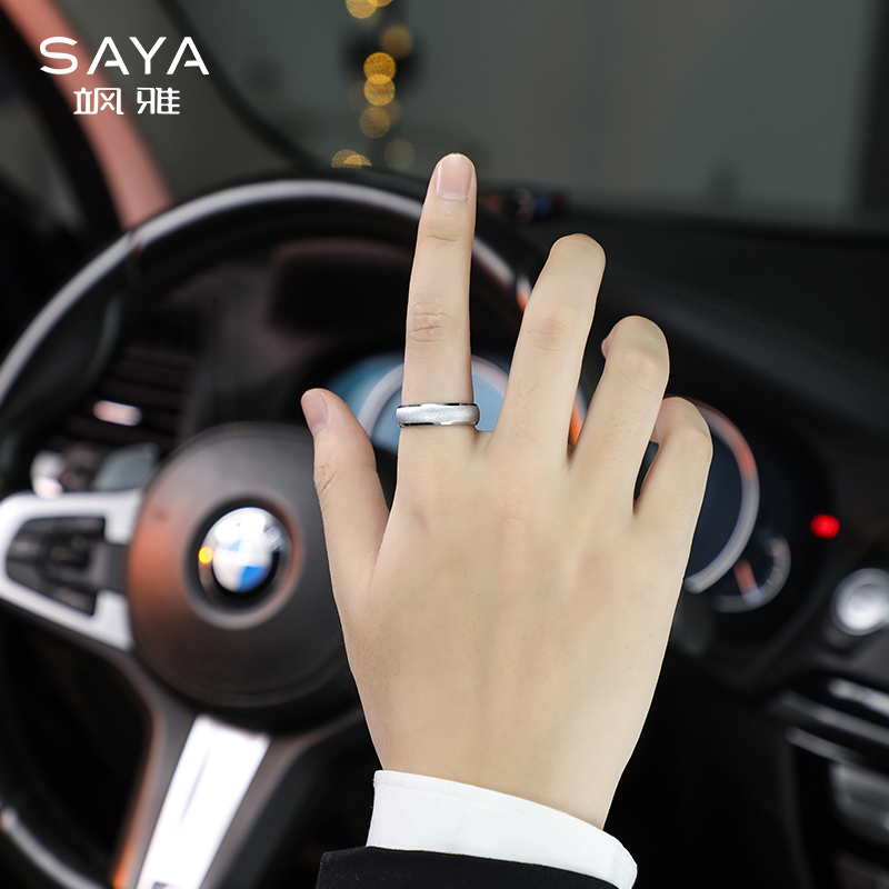 磨砂素圈戒指男士钨金古法金色潮简约银色钨钢O食指单身指环女尾