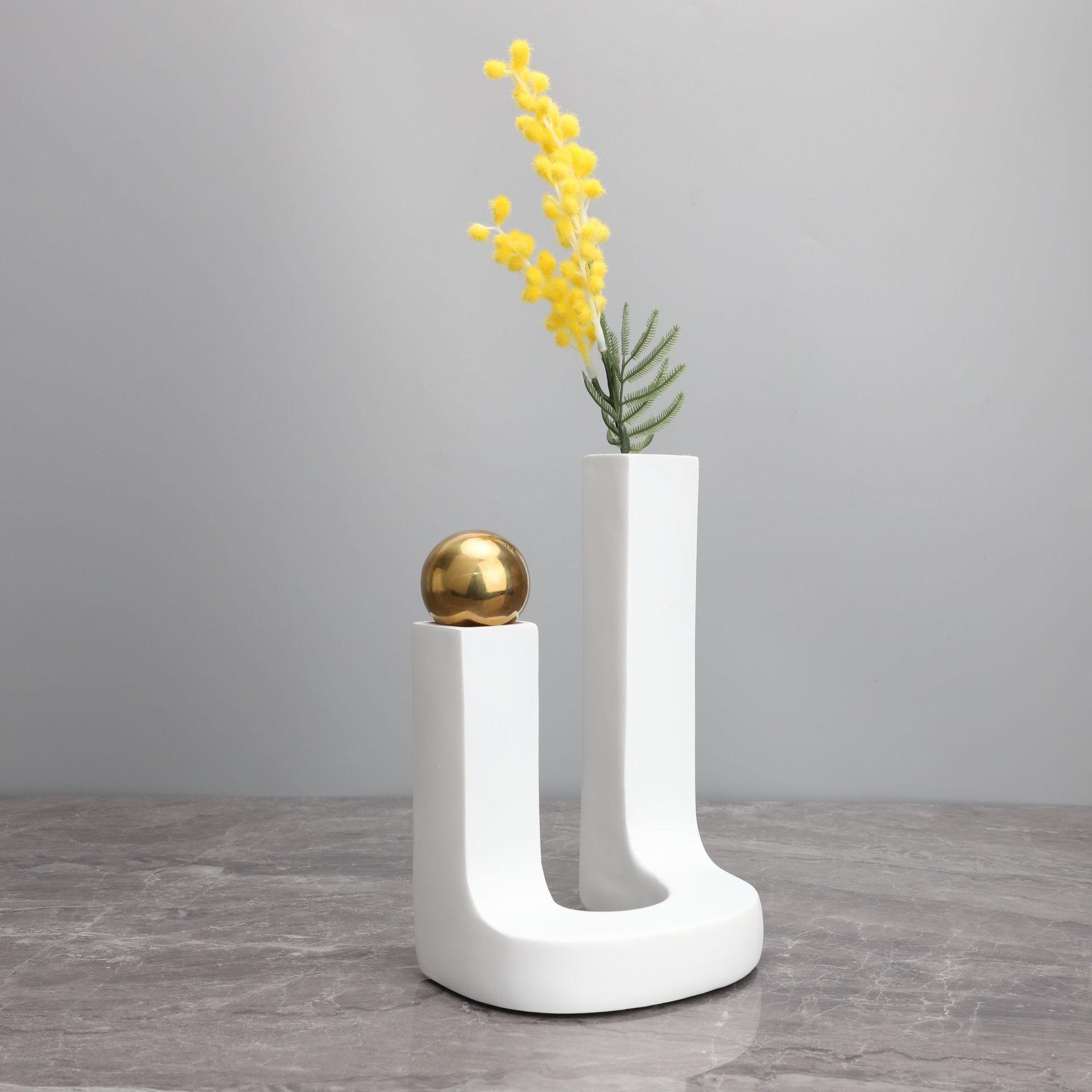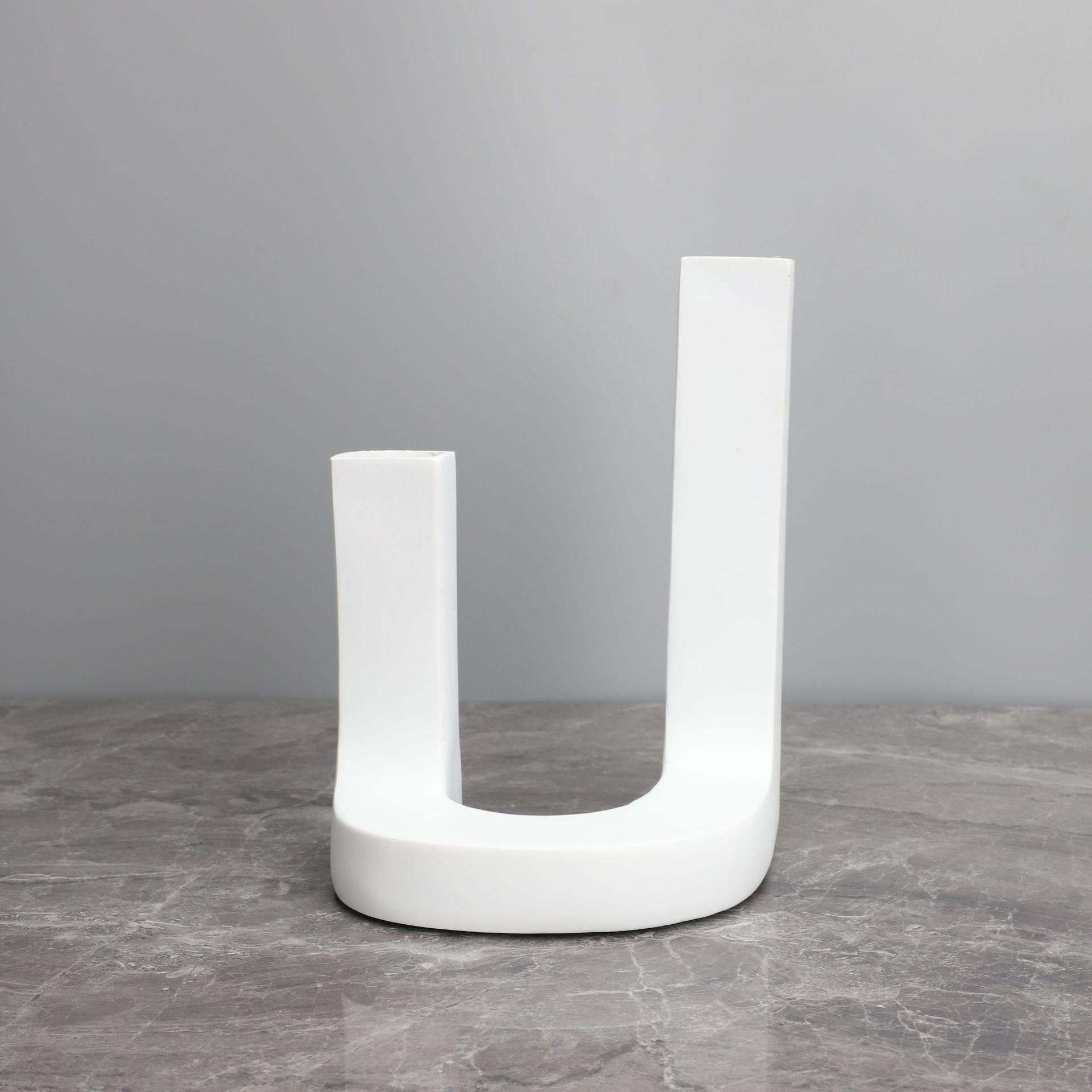 现代简约创意U形白色树脂花器样板房办公室家居客厅装饰花瓶摆件