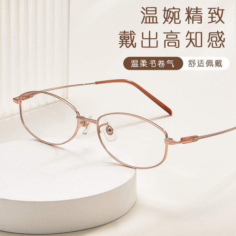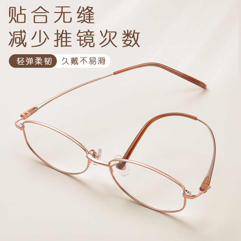 超轻纯钛近视眼镜女网上可配度数防蓝光眼镜框金丝小框小脸椭圆镜