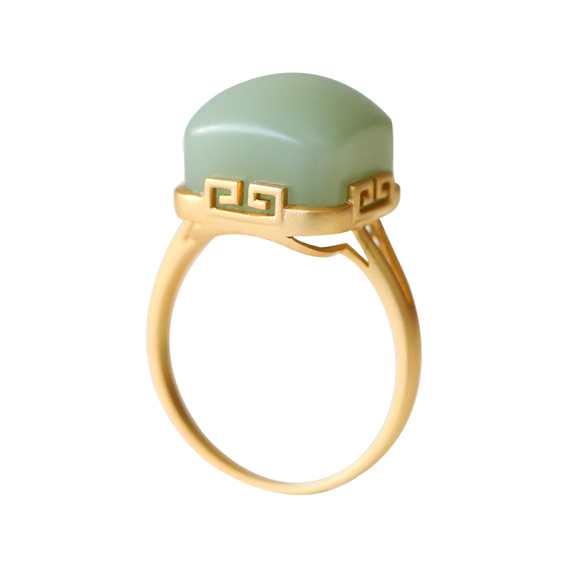 玉匠人 粉青戒指 碧玉粉青 戒面 蛋面粉绿戒指 女定制金镶玉K金