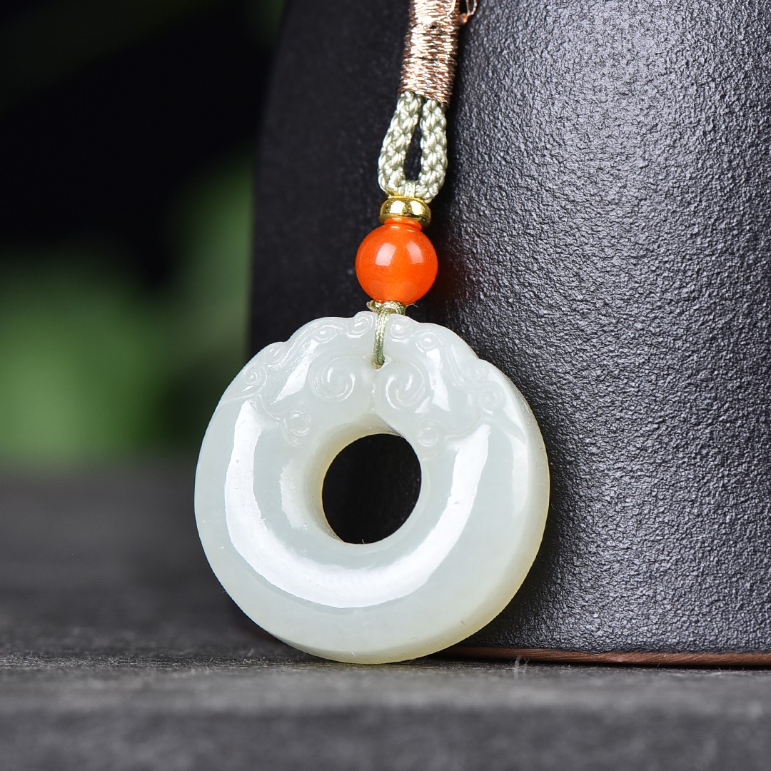 新疆和田玉羊脂玉白玉青白玉生肖龙平安扣吊坠男女款挂件玉坠玉佩