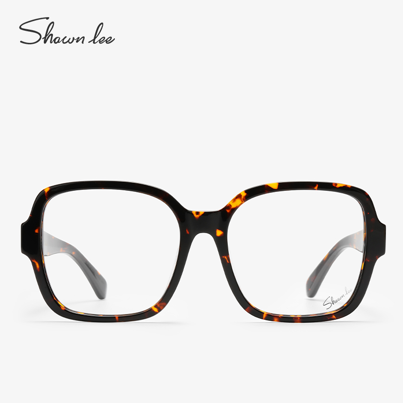 Shawnlee2025全新方框复古玳瑁眼镜框女豹纹光学板材镜架男显脸小