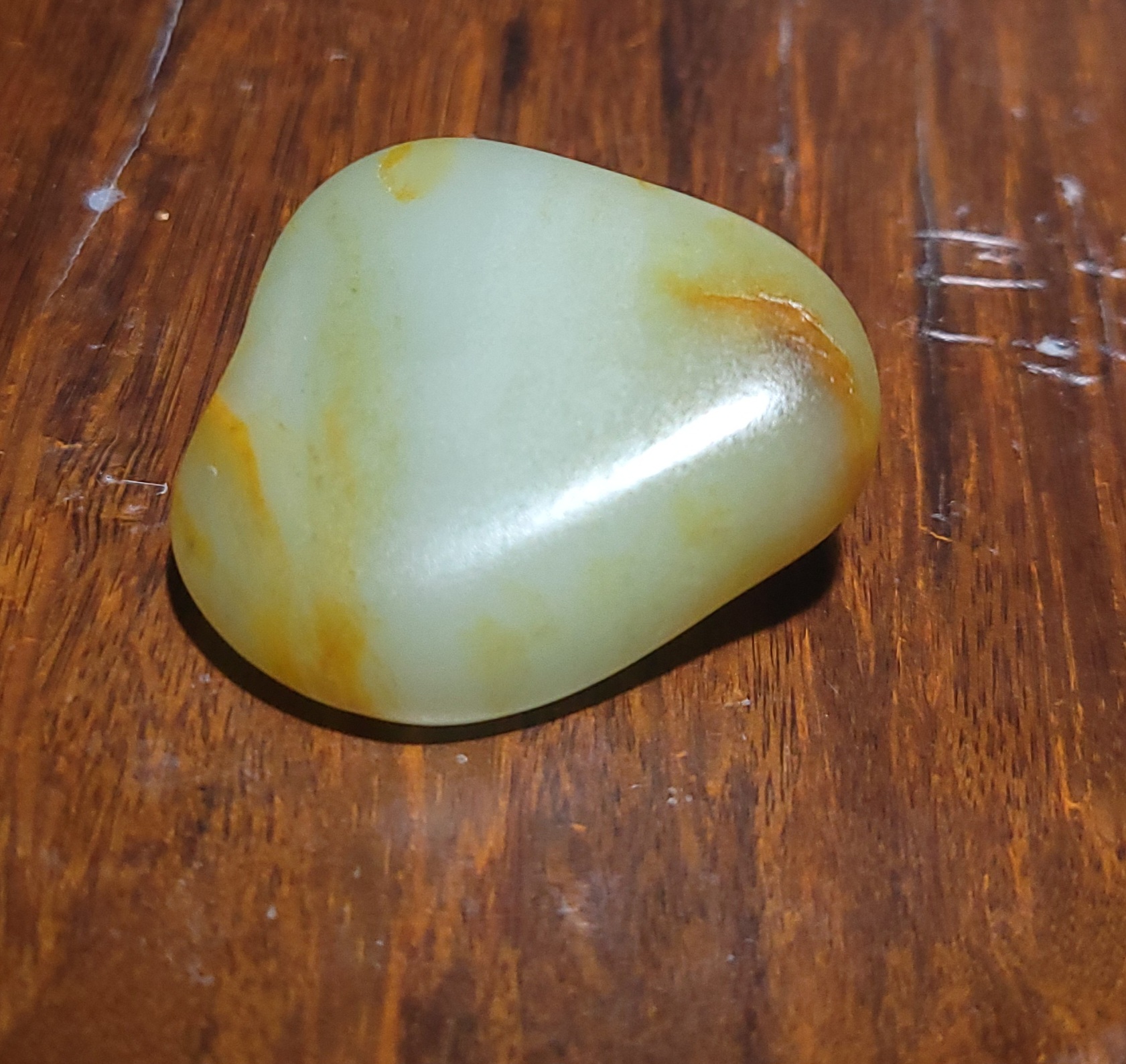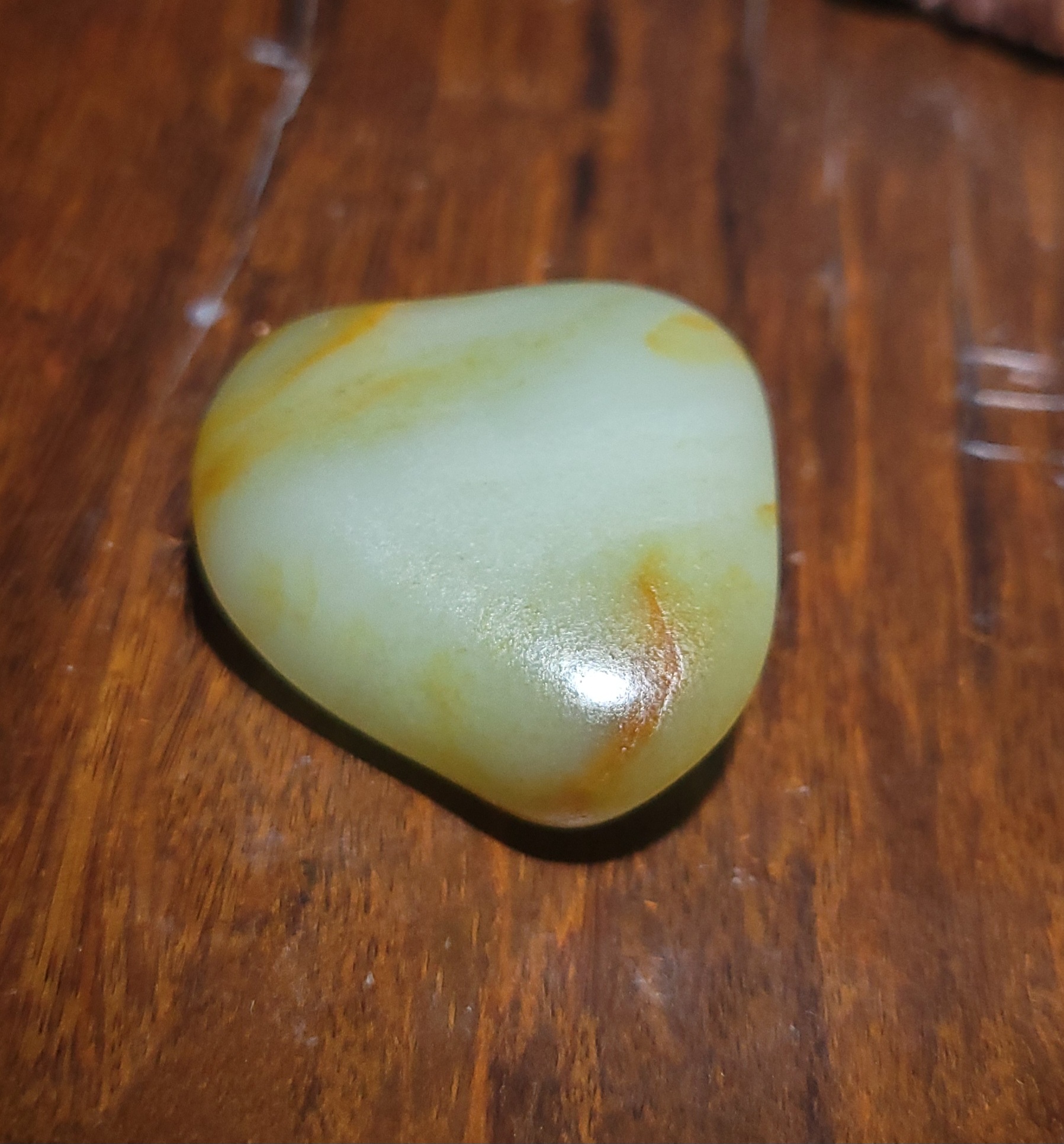 YQ110221 33.7克,聚皮三角形老熟高油润的青白玉籽 新疆的猫