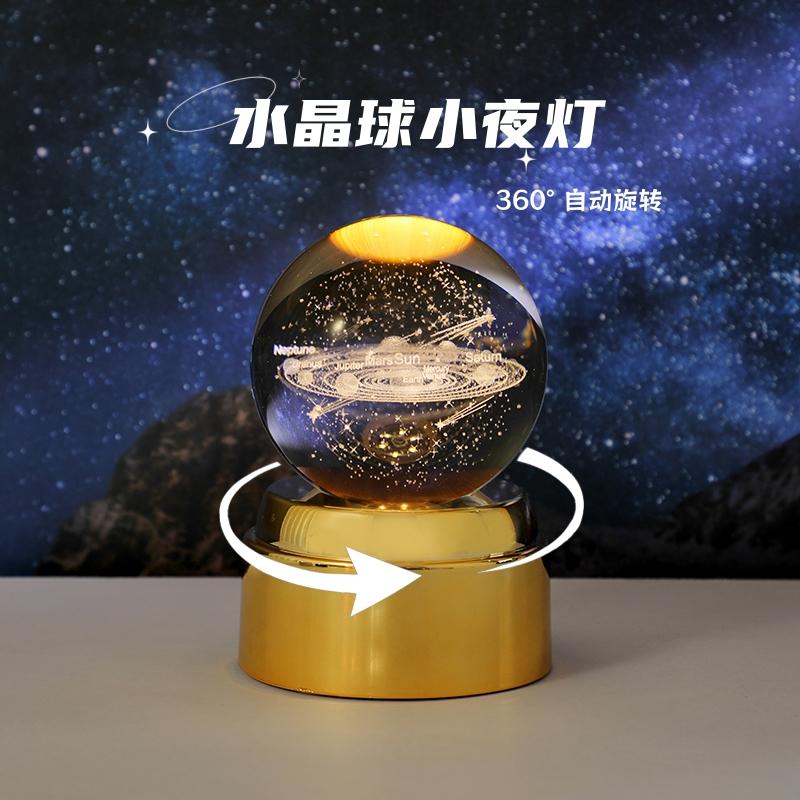 星空发光水晶球旋转小夜灯桌面摆件生日礼物送男生兄弟中秋节礼品