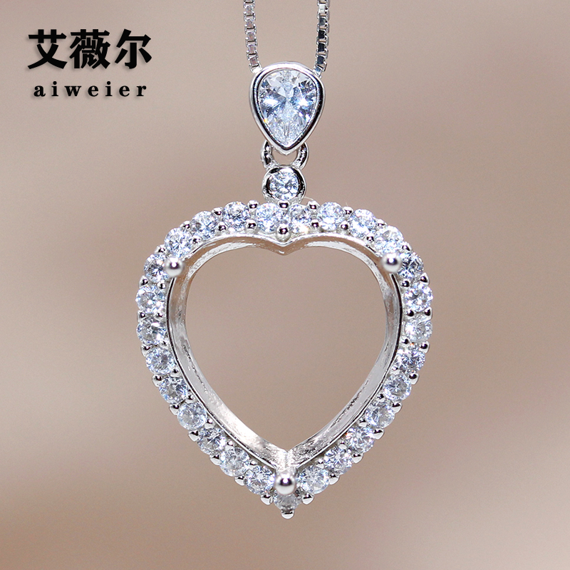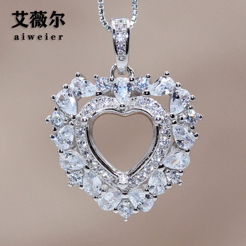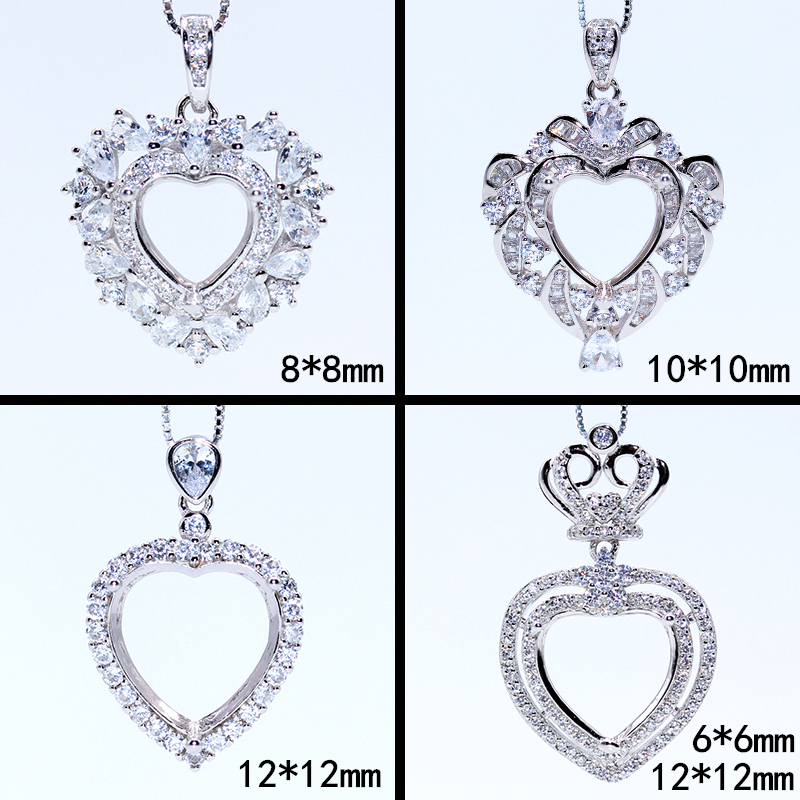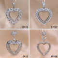 精工S925纯银吊坠空托心形定制镶嵌宝石18K金6*6-8*8-10*10-12*12