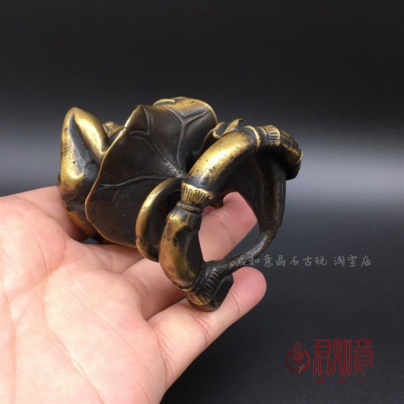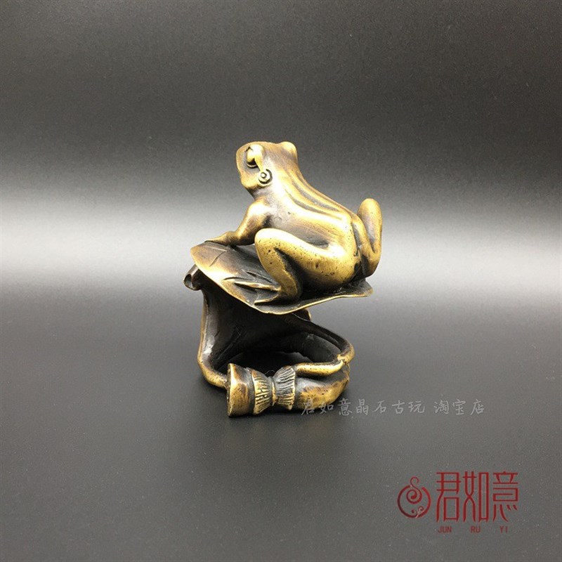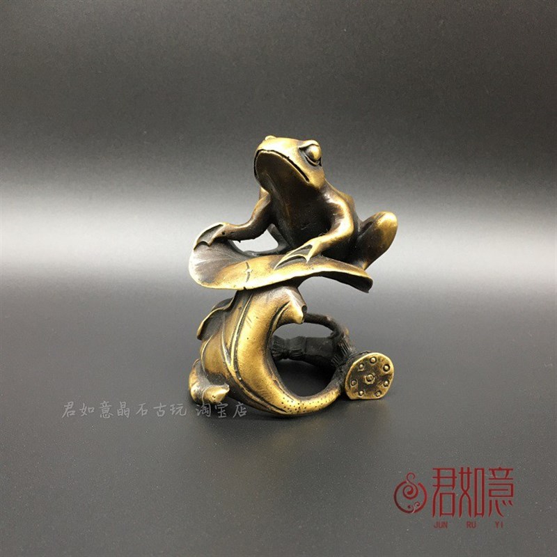 现货速发铜器荷叶青蛙摆件实心黄铜复古工艺池塘意境小青蛙铜青蛙