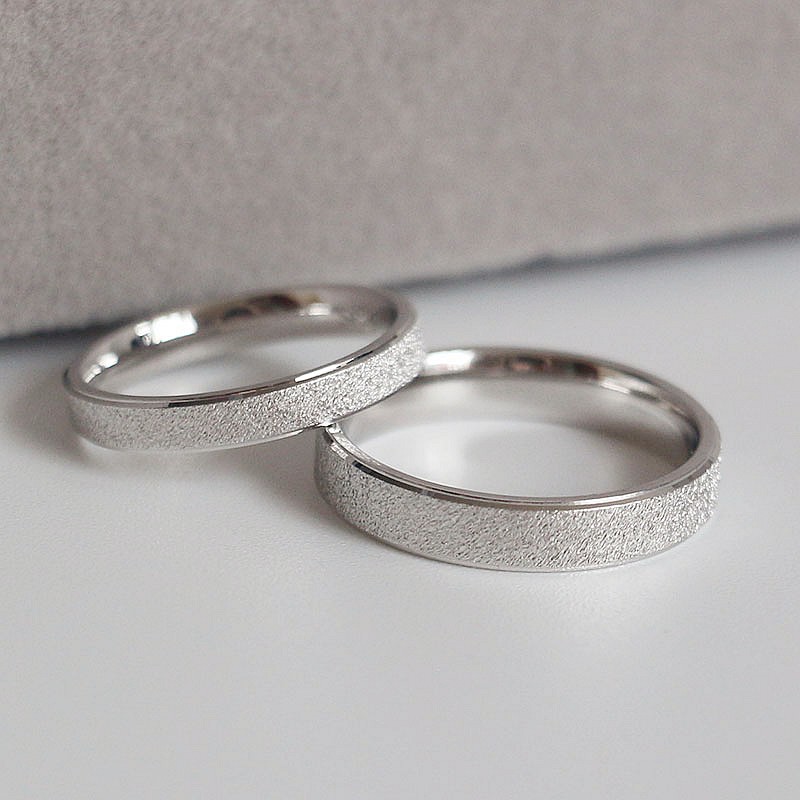 S925纯银磨砂银色情侣戒指对戒小众设计感食指戒闭口指环定制刻字