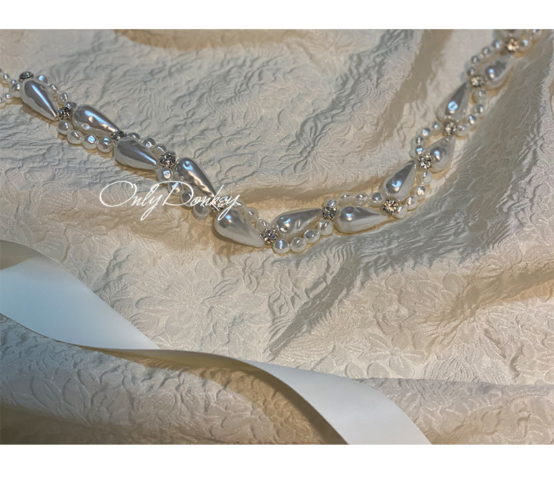 OnlyDonkey simone风格丝带珍珠钻石装饰串珠链条肩带项链发饰